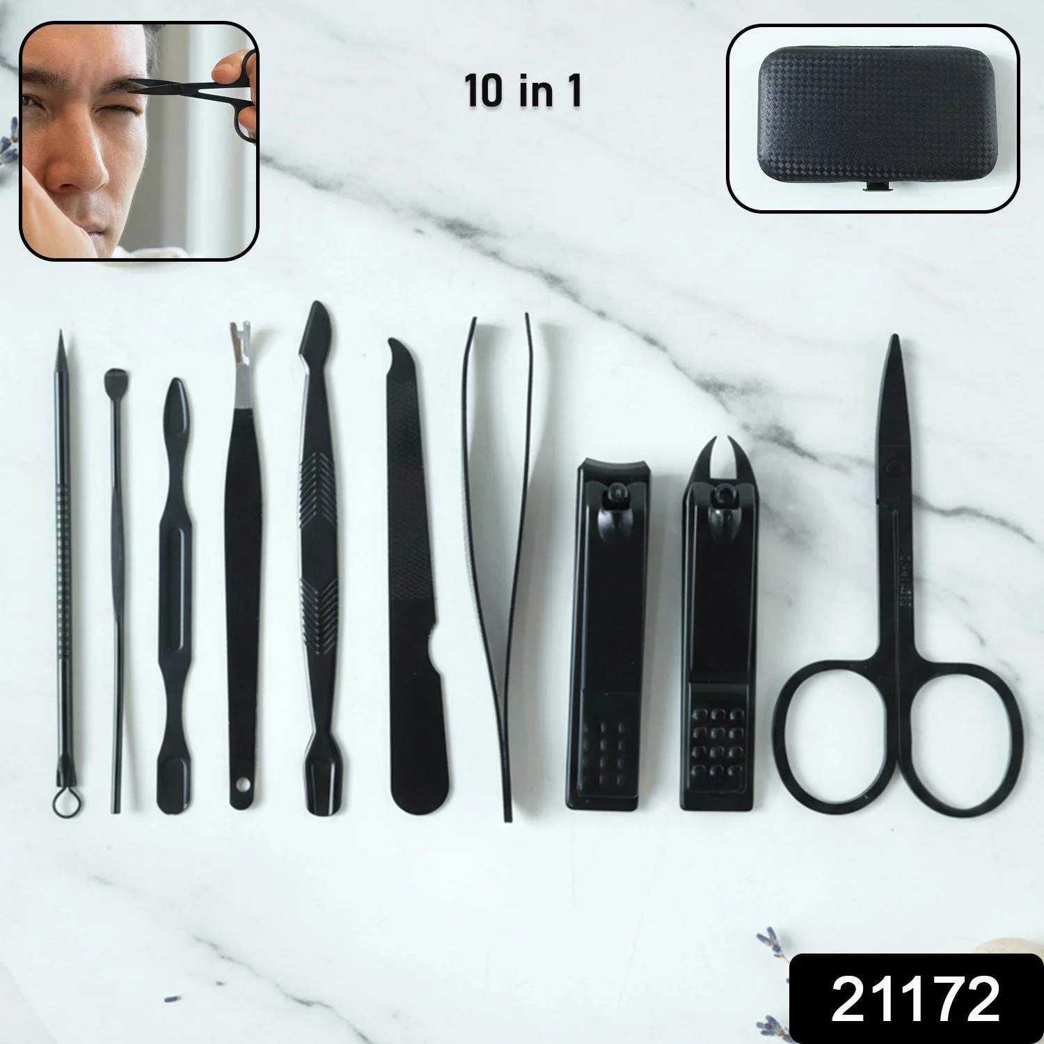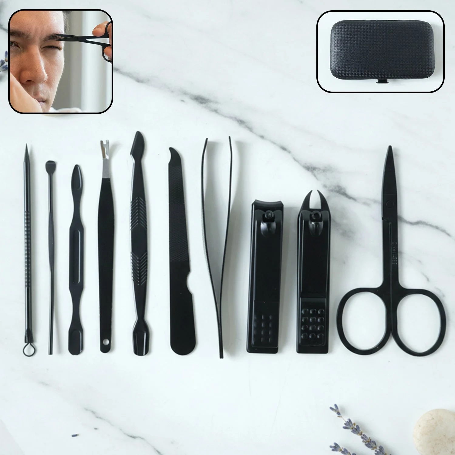 This 10 in 1 grooming kit is a comprehensive personal care solution designed for precise nail, facial, and hygiene maintenance. The set includes multiple grooming tools suitable for trimming, shaping, cleaning, and detailed care, all neatly arranged in a compact protective case. Each tool is crafted for comfortable handling and accurate performance, making everyday grooming easy and efficient. Ideal for both home routines and travel use, this kit supports a clean, well-maintained appearance at all times.