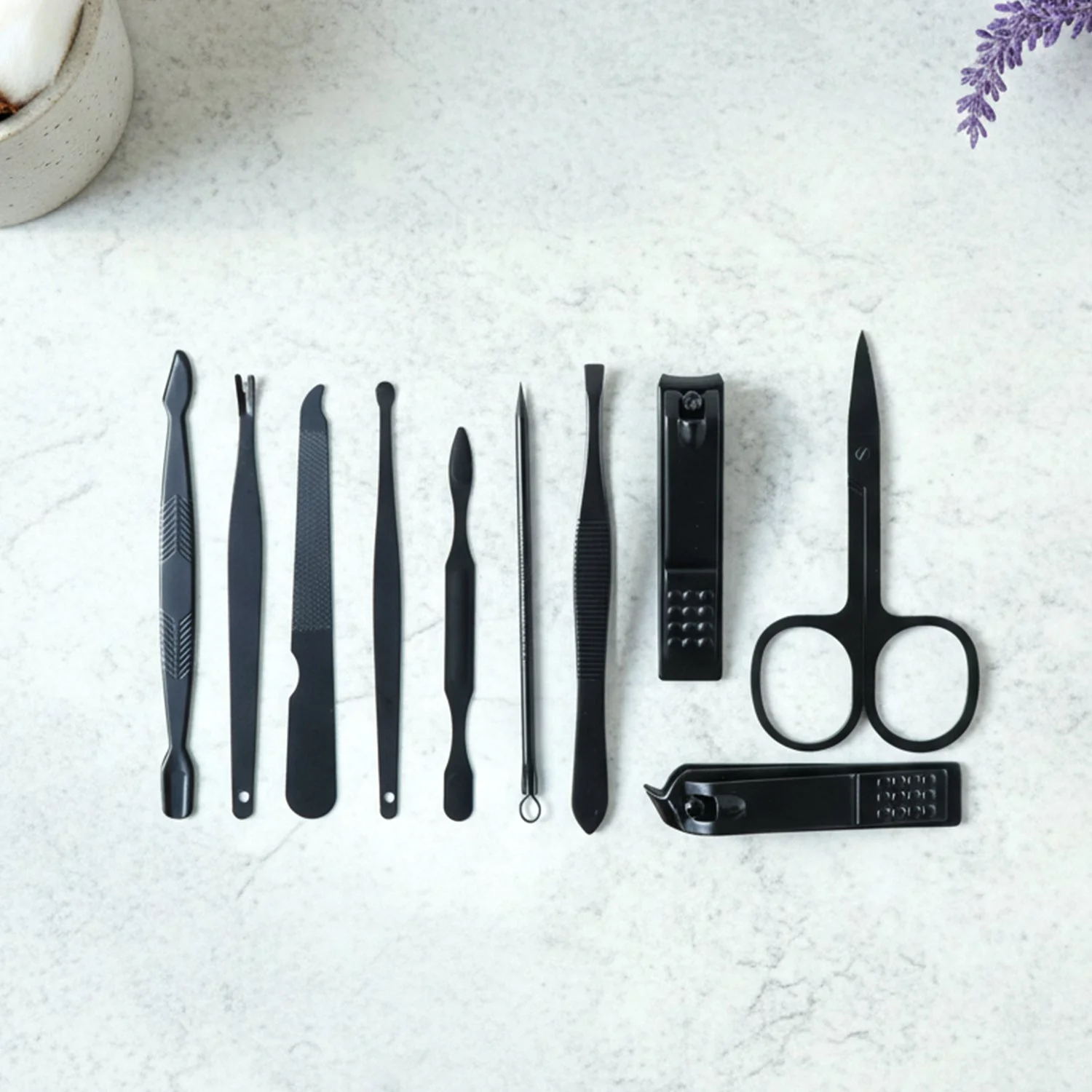 Includes tools for manicure, pedicure, facial, and eyebrow grooming