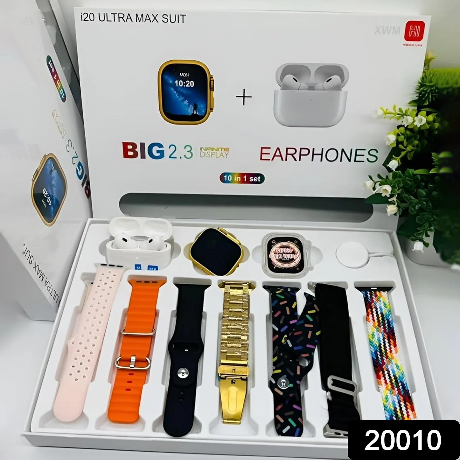10 in1 Set Ultra 2 Smart Bluetooth Calling Smartwatch + Earphones with Transparent Screen Guard Watch with Seven Classic Straps For Smartwatch for MEN & WOMEN Gift Product (1 Set / Mix Color)