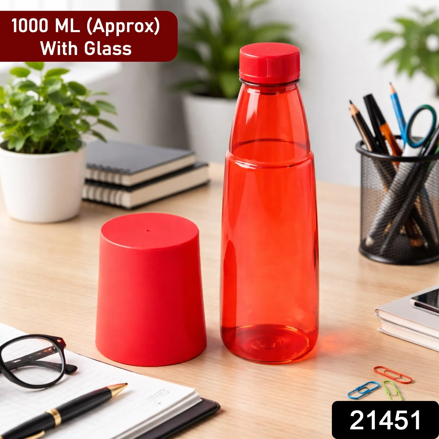 1000 ML (Approx) Plastic Hydra Flow Reusable Water Bottle with Glass – Leakproof Screw Cap Drinking Bottle for Office, School, Gym & Daily Hydration Use (1 Pc)