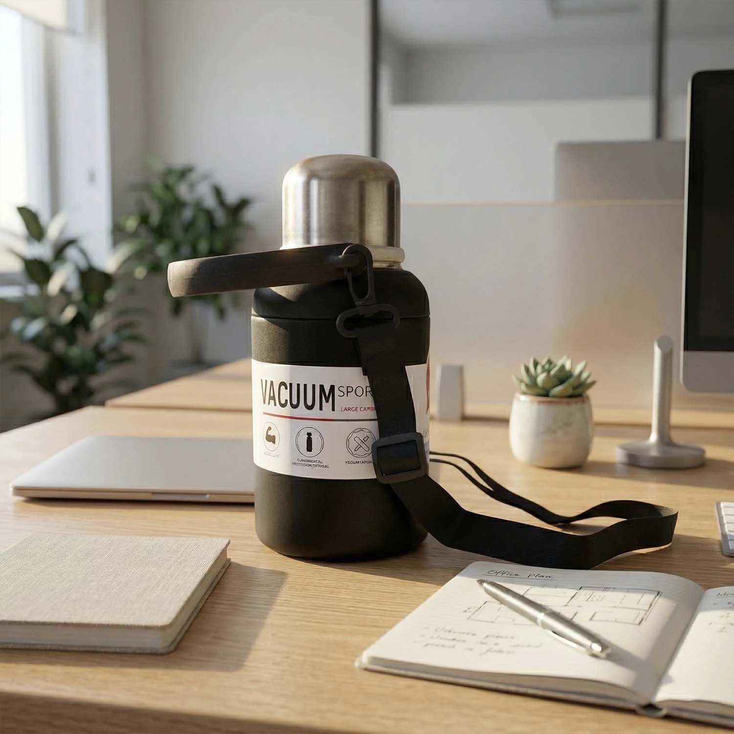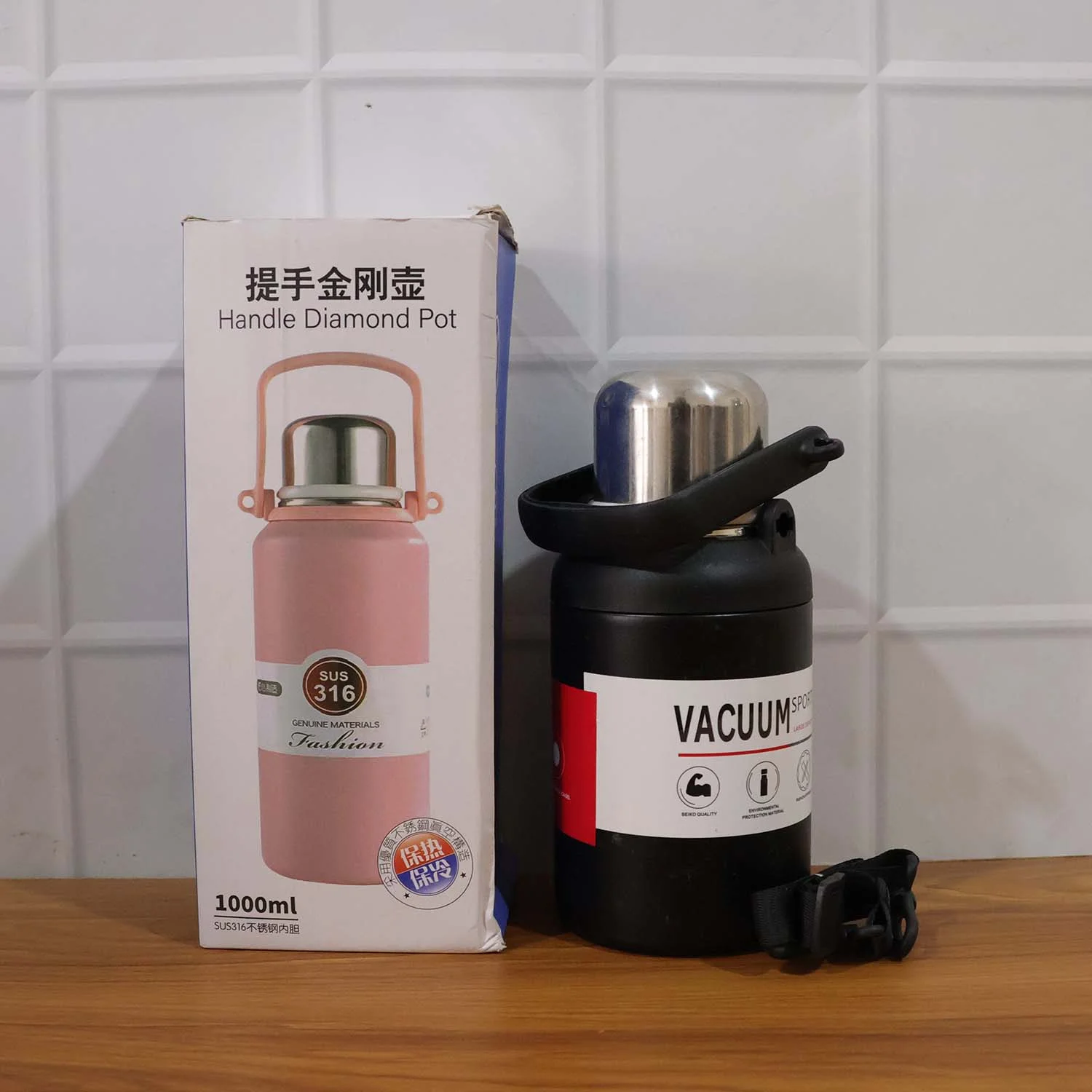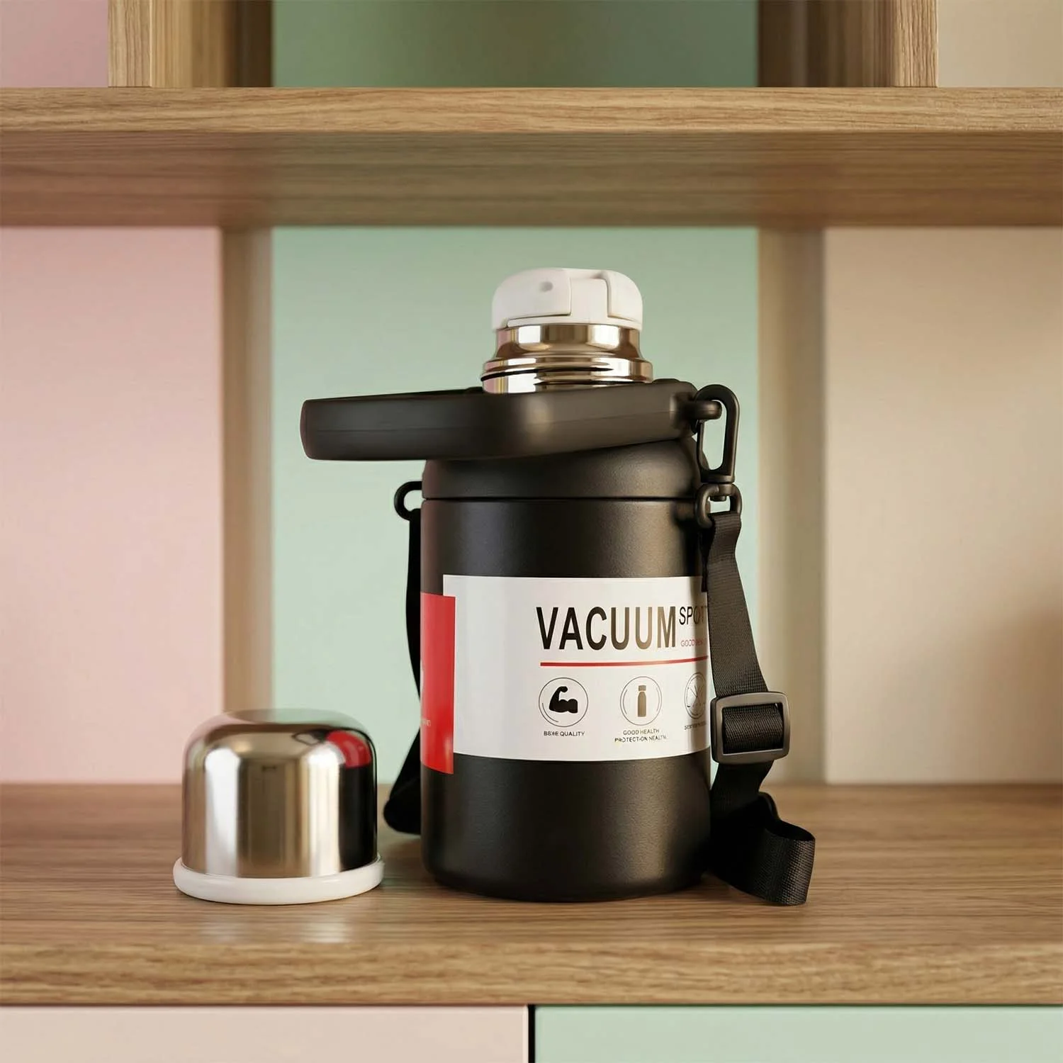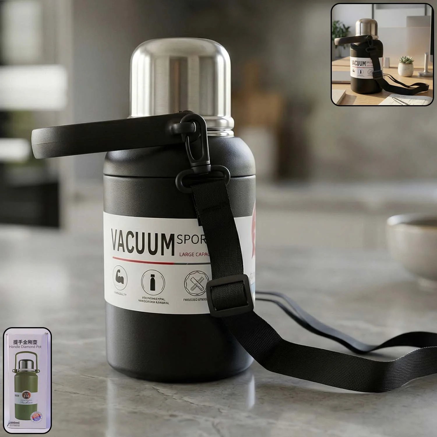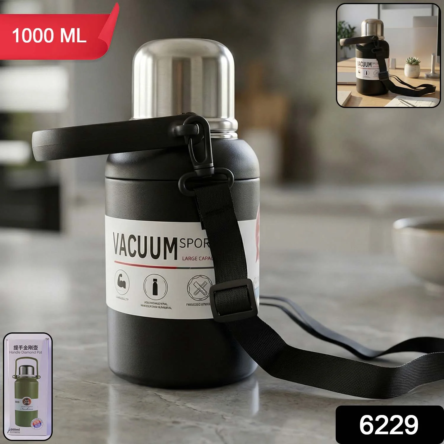 1000 ML Vacuum Insulated Stainless Steel Flask Bottle with Strap Portable Thermal Water Bottle Hot & Cold Storage Travel Flask 1 Pc