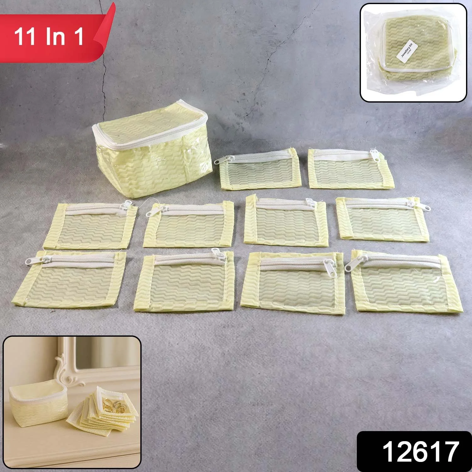 11-in-1 Jewellery Kit – Transparent PVC Jewellery Organizer Pouch Set with Zipper pouch | Lightweight & Travel-Friendly Storage Solution for Earrings, Bangles, Rings, Chains & Makeup Accessories | Dustproof and Reusable Design (11 Pc Set)
