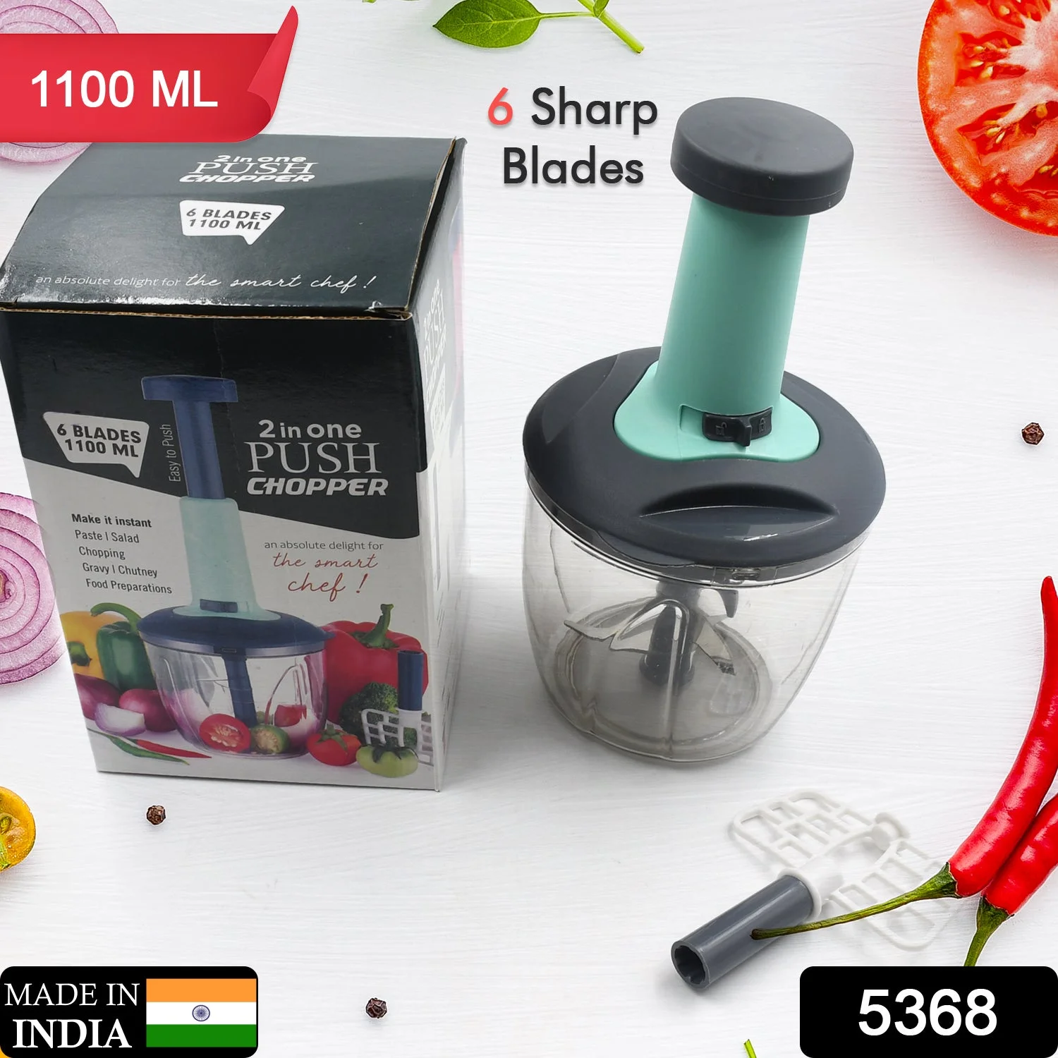 5368 1100 ml 2 in 1 Push up Chopper with affixed with 6 Sharp Blade | Vegetable and Fruit Cutter with Easy Push and chop Button