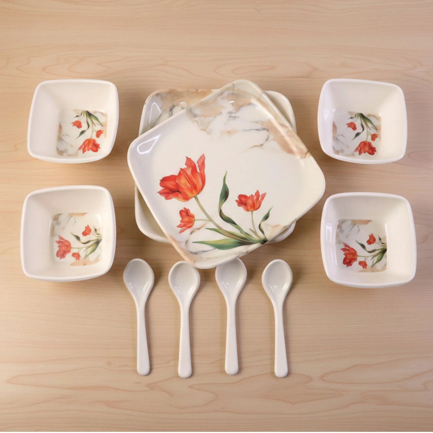 This new generation of melamine tableware is crafted to blend beauty with convenience, making it an ideal choice for modern households. Whether serving breakfast, lunch, or dinner, the Lotus 12 Pcs Set ensures your table always looks inviting.