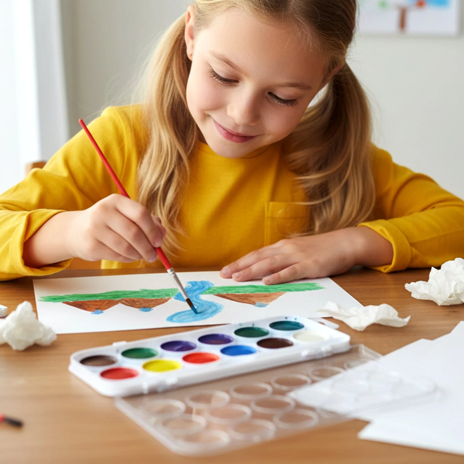 Unleash creativity with this compact 12 shade watercolour paint set, specially designed for kids and beginners who love to explore art. This portable painting kit includes a range of vibrant colors along with a brush, making it perfect for school projects, hobby painting, and creative expression. The compact design ensures easy storage and portability, allowing children to carry it anywhere for on-the-go creativity. Ideal for learning color blending and artistic skills, this set makes painting fun, engaging, and mess-free. A great addition to any art collection for budding artists.