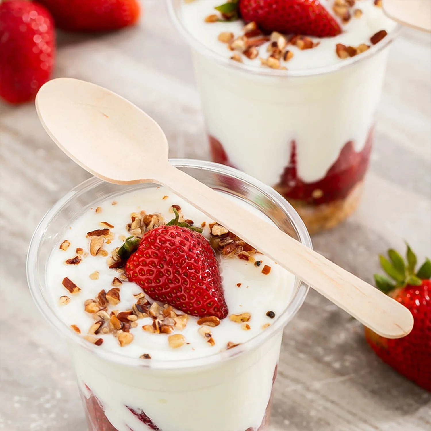 Eco-Friendly Birchwood: Renewable, biodegradable wooden cutlery with a natural finish.
