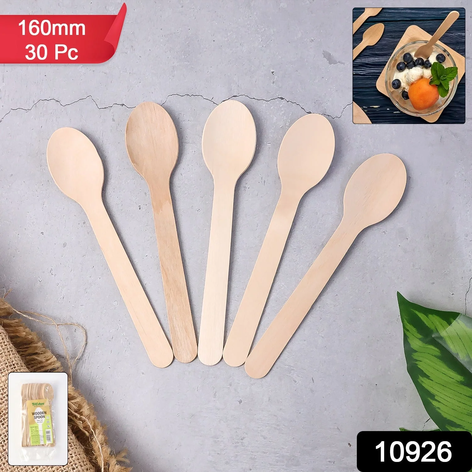 160mm Wooden Spoon – 30 Pcs Pack, Smooth & Splinter-Free Birchwood Disposable Spoon, Strong & Eco-Friendly Cutlery for Hot & Cold Food, Ideal for Cafés, Catering & Takeaway