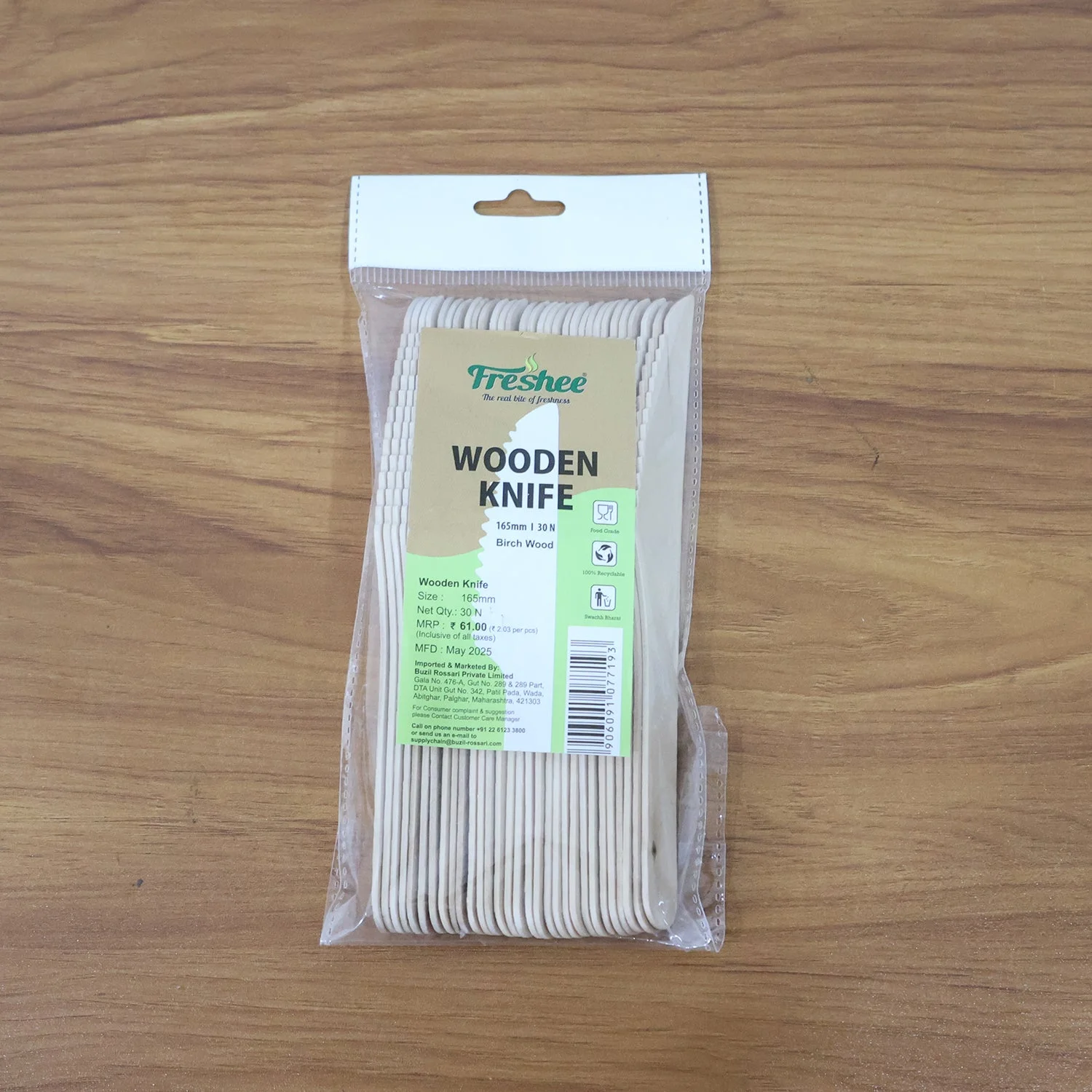 wooden knife , disposable wooden knife , smooth splinter-free knife , serrated wooden knife , strong wooden knife , disposable cutlery for meals , party wooden knife , catering wooden cutlery , picnic wooden knife , single-use wooden knife , natural wooden knife, Freshee wooden knife , wooden dining knife , portable wooden knife , knife for hot and cold food