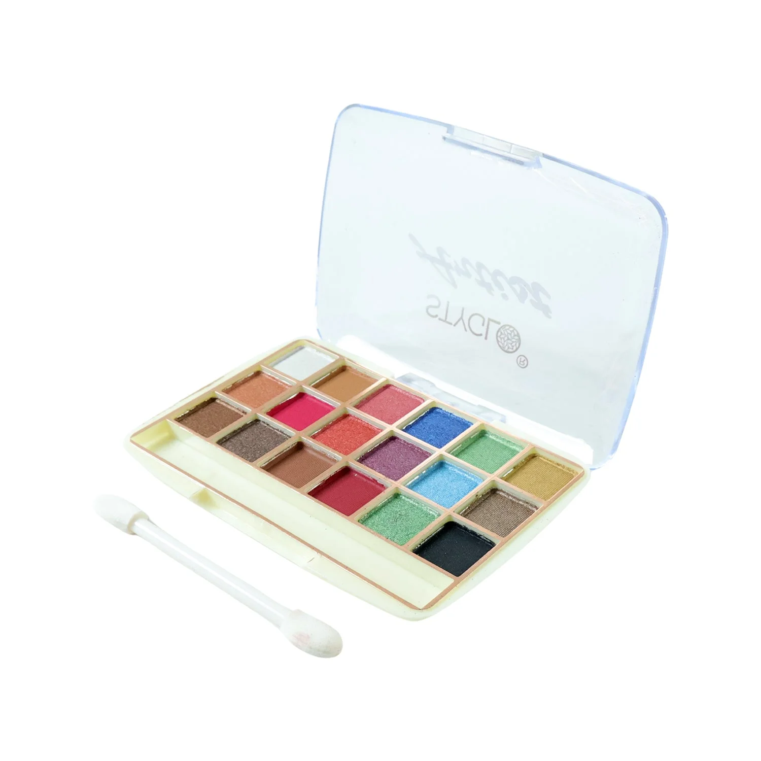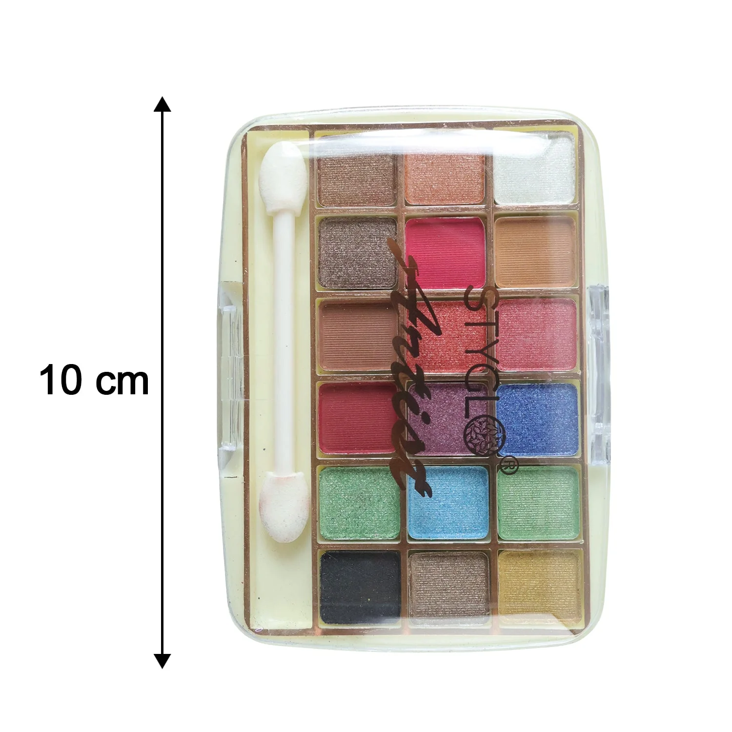 18 color eyeshadow makeup palette, multi shade matte shimmer glitter eye shadow kit, professional makeup palette with applicator, long lasting cosmetic eyeshadow palette, daily party bridal eye makeup kit, versatile eye shadow palette for all occasions, vibrant color eyeshadow kit for eyes, high pigmentation shimmer matte glitter palette, portable makeup palette for travel and parties, premium cosmetic eye shadow set, multi finish eyeshadow palette with brush, colorful professional eye makeup kit