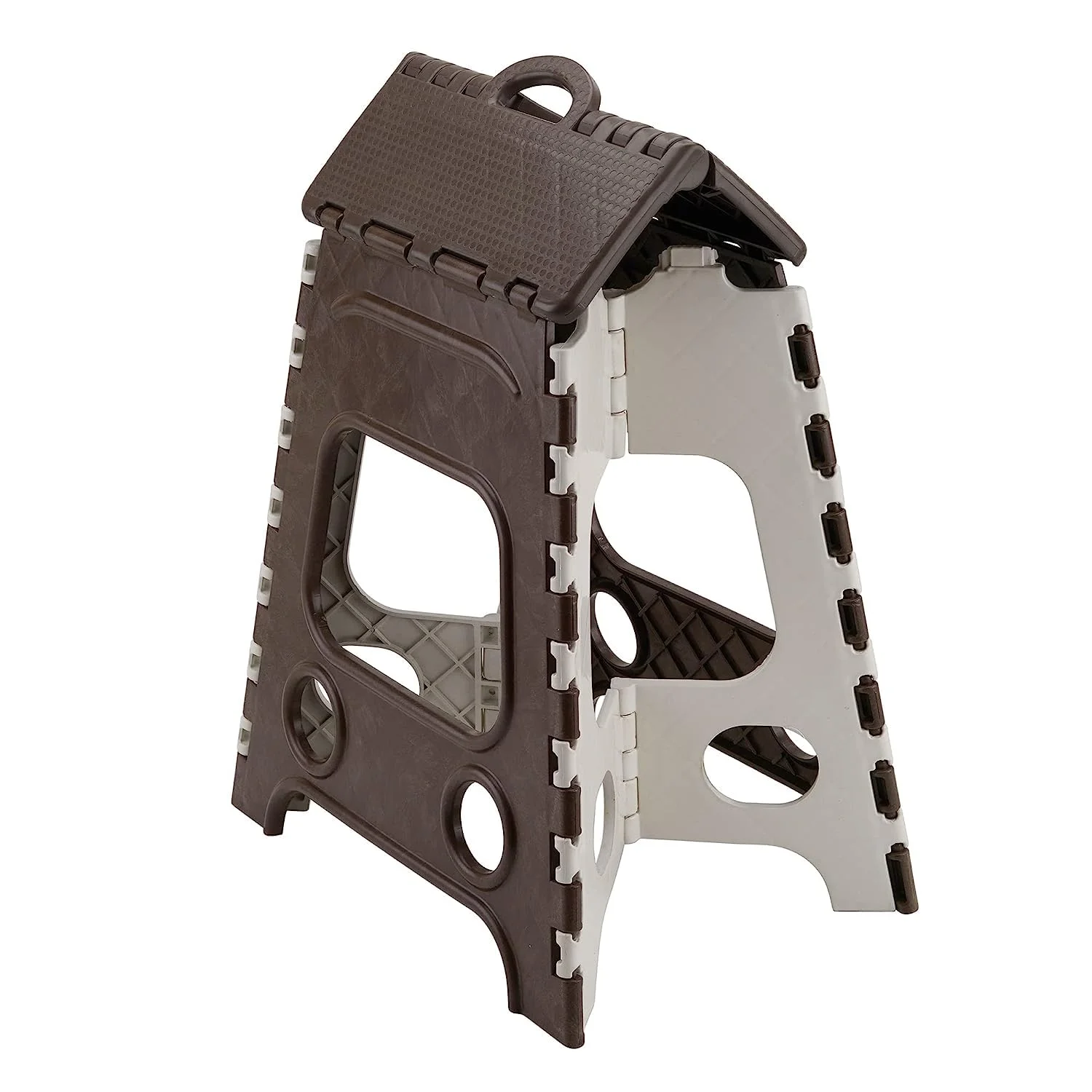 - CARRYING HANDLE: Ergonomic carrying handle is designed for easy folding and carrying. Just lift the handle, it will fold easily and quickly in a split second with only one hand. The step stool’s handle appears when the stool is folded flat.