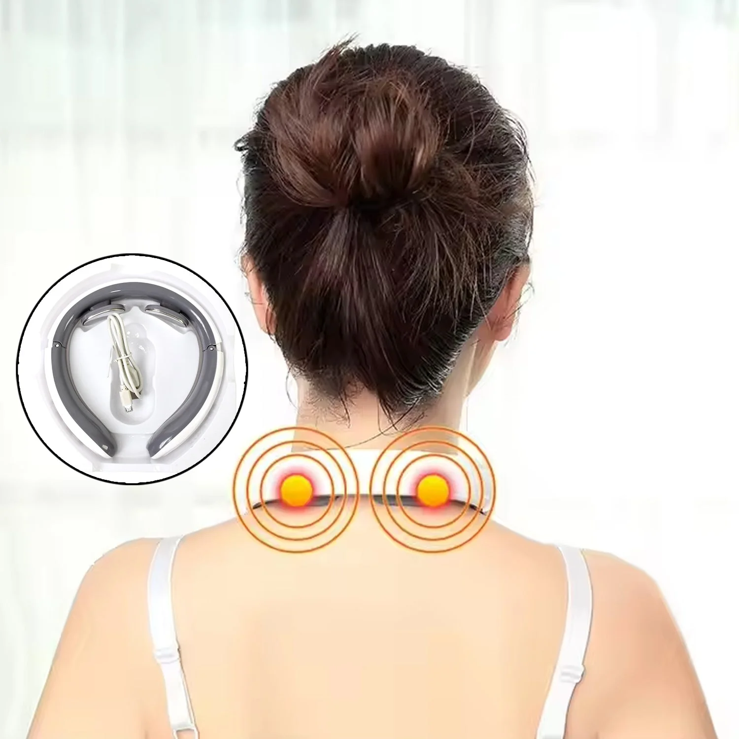 2 Heads Smart Electric Neck and Back Pulse Massager Wireless Heat Cervical Vertebra Relax Pain Kneading Massage Machine (1 Pc / Mix Design)