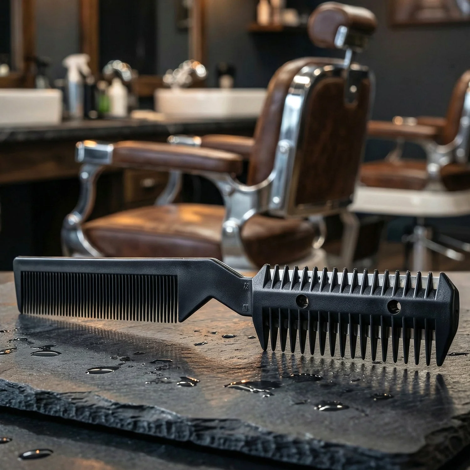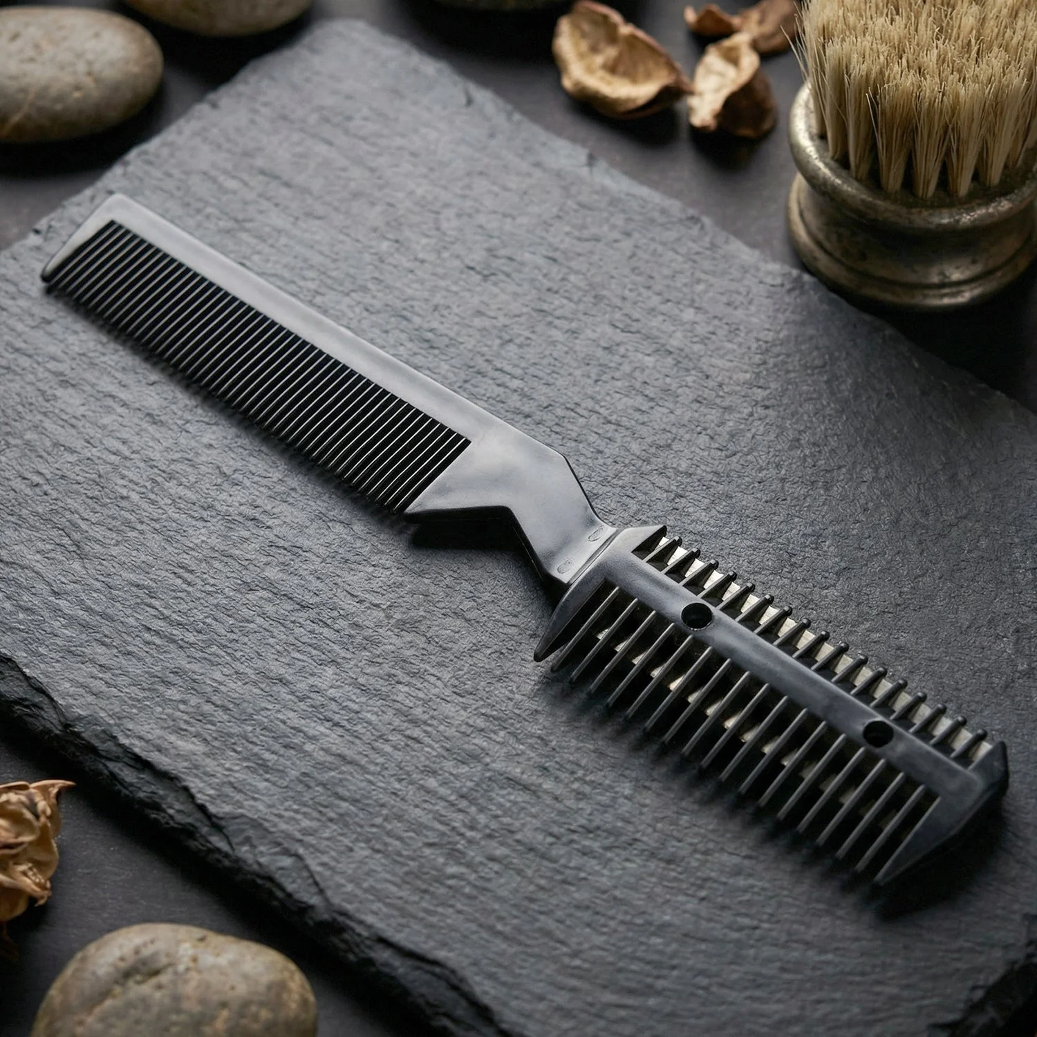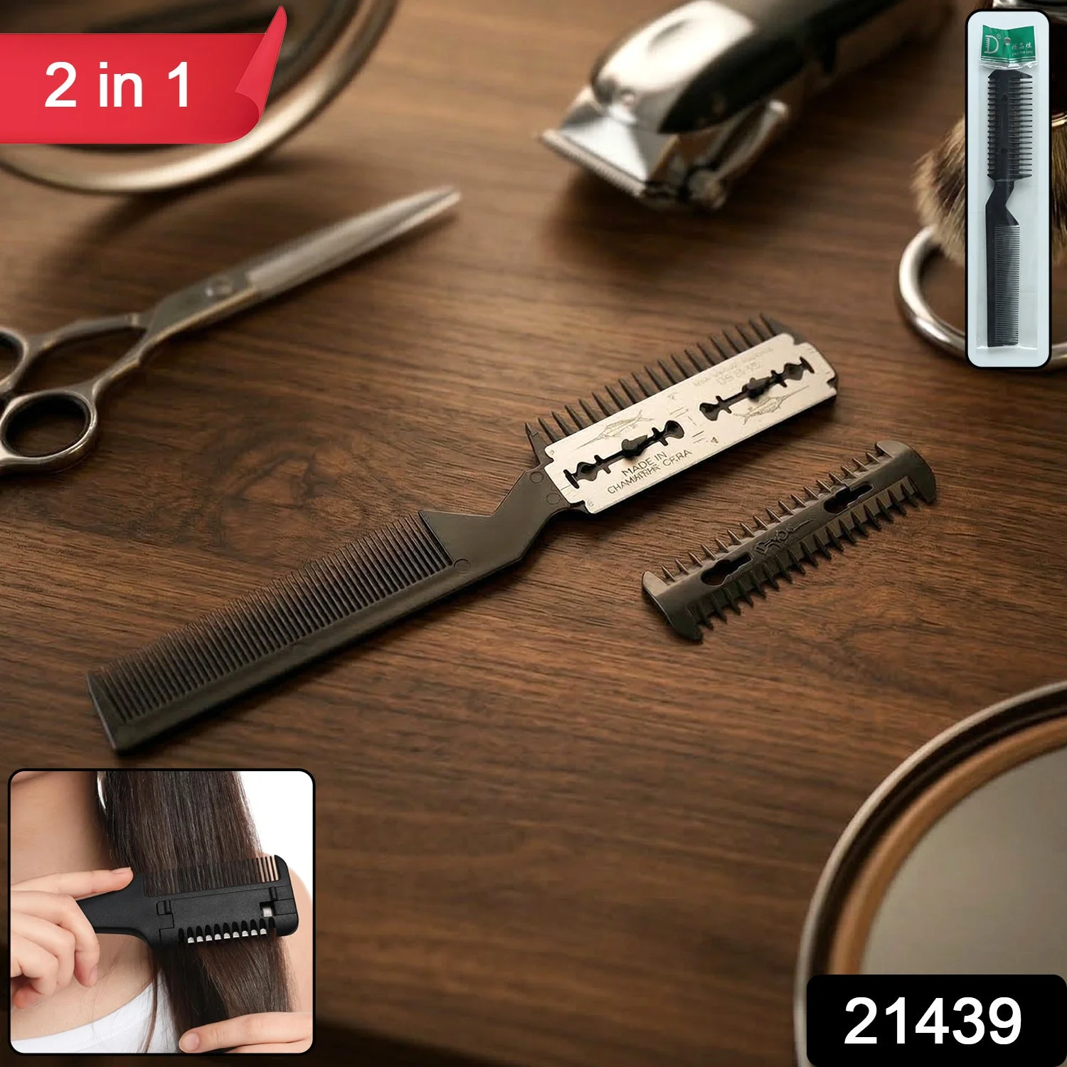 2 in 1 double-sided comb with integrated razor blade for styling and trimming