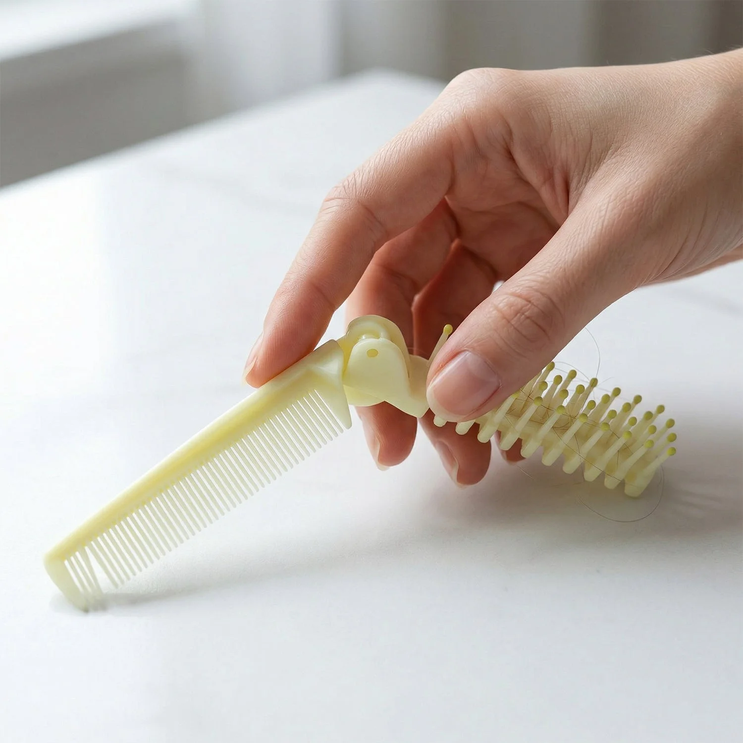 2 in 1 hair comb brush, foldable hair comb, portable hair brush, dual function comb, travel hair comb, compact hair brush, detangling hair brush, hair styling comb, pocket hair comb, foldable brush comb, travel grooming tool, mini hair brush, hair care tool, everyday hair comb, multipurpose hair brush, folding hair brush, compact grooming comb, handheld hair brush, tangle free brush, smooth hair comb, hair detangler tool, salon style comb