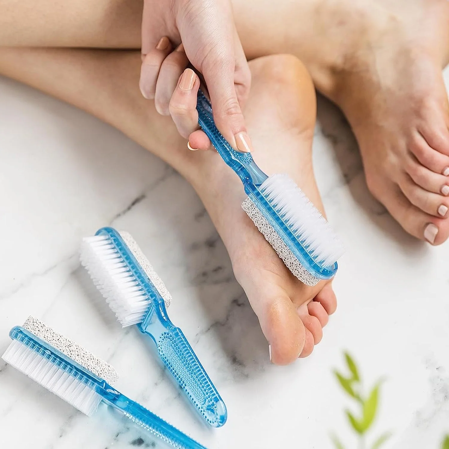 2-in-1 foot scrubber brush , dual-sided pedicure tool , pumice stone foot brush , dead skin remover , foot care brush , smooth feet tool , soft feet brush , durable plastic handle foot brush , hard skin remover , spa foot care tool , foot grooming brush , foot scrubber for heels , pumice pedicure brush , foot smoothing brush , pedicure foot tool