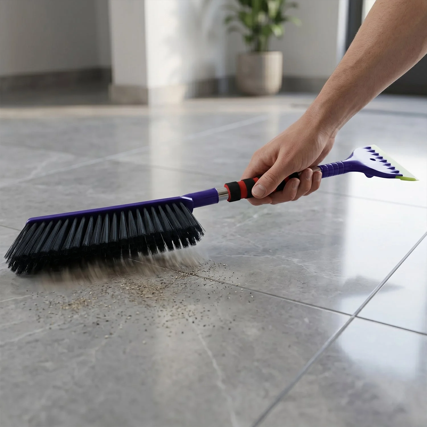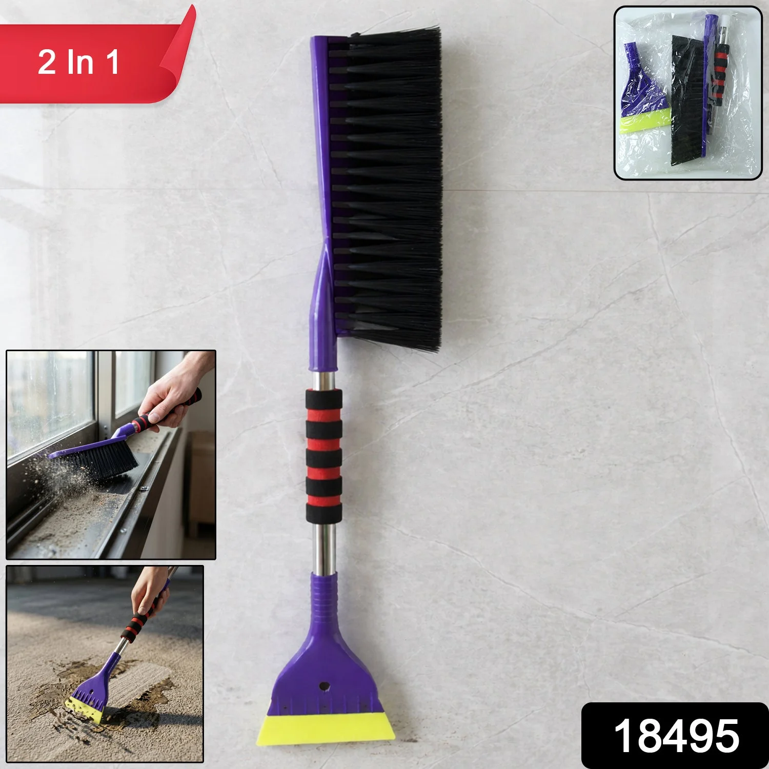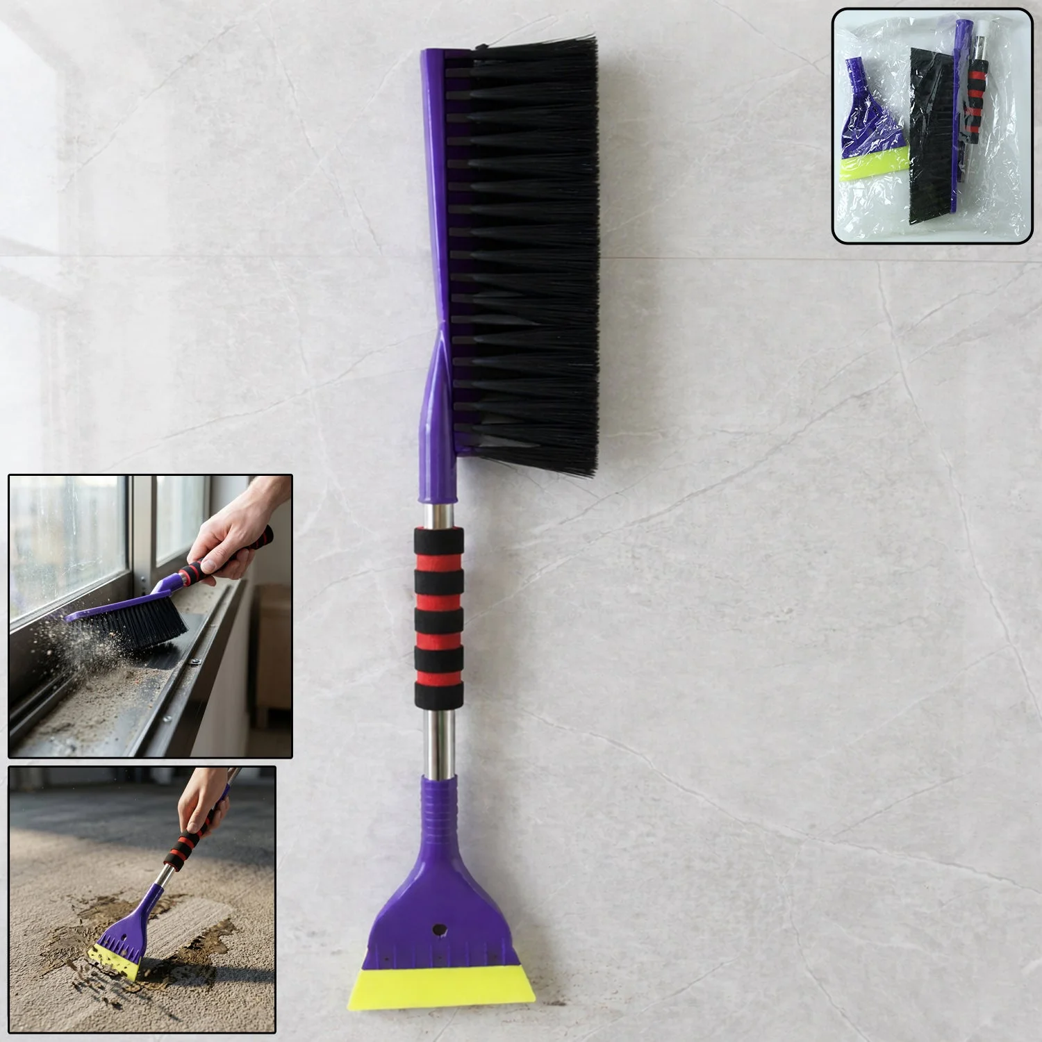 Make your cleaning routine faster and more efficient with this versatile 2-in-1 cleaning brush with built-in scraper. Designed for tackling both dry dust and stubborn dirt, this tool combines a strong bristle brush with a durable scraping edge for deep cleaning. It is perfect for cleaning window tracks, corners, floors, tiles, and hard-to-reach areas. The ergonomic handle ensures a firm grip, making it comfortable to use for extended periods. A practical and essential cleaning tool for every home to maintain cleanliness with ease.