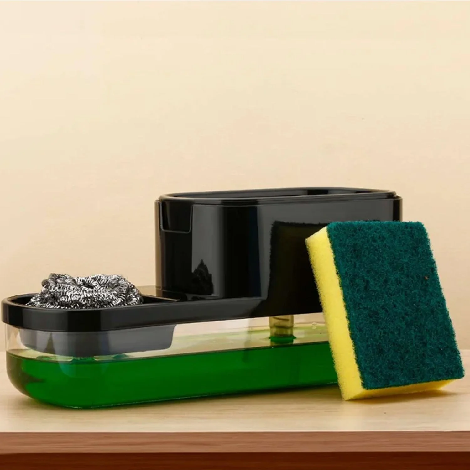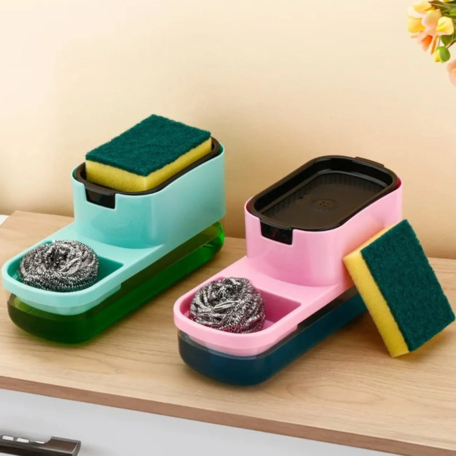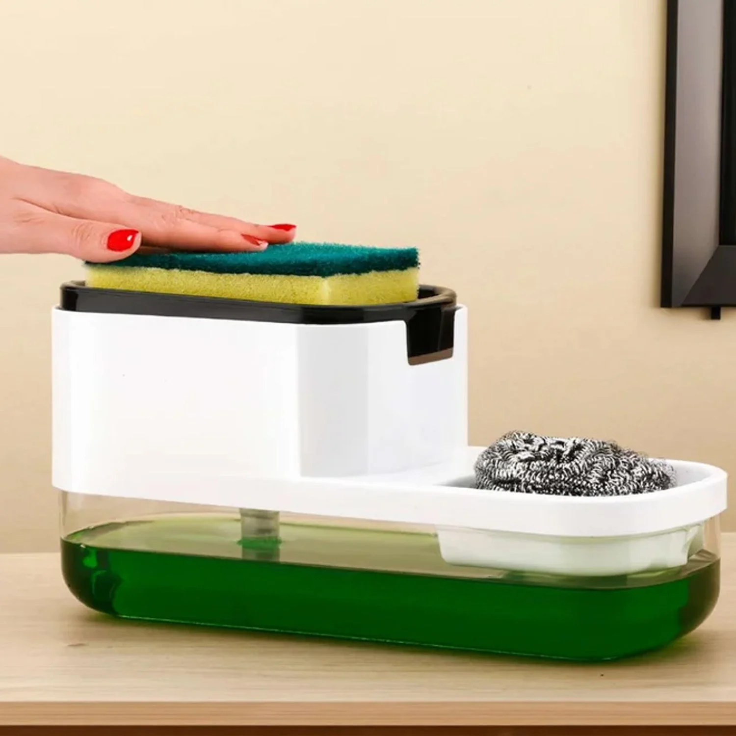 2 in 1 Plastic Dish Soap Liquid Dispenser Sponge Holder Dishwashing Soap Dispenser Kitchen Sink Countertop Dish Soap Pump Dispenser Soap Dispenser For Kitchen Bathroom Dish Wash Liquid Capacity 450 ML Approx (1 Set)