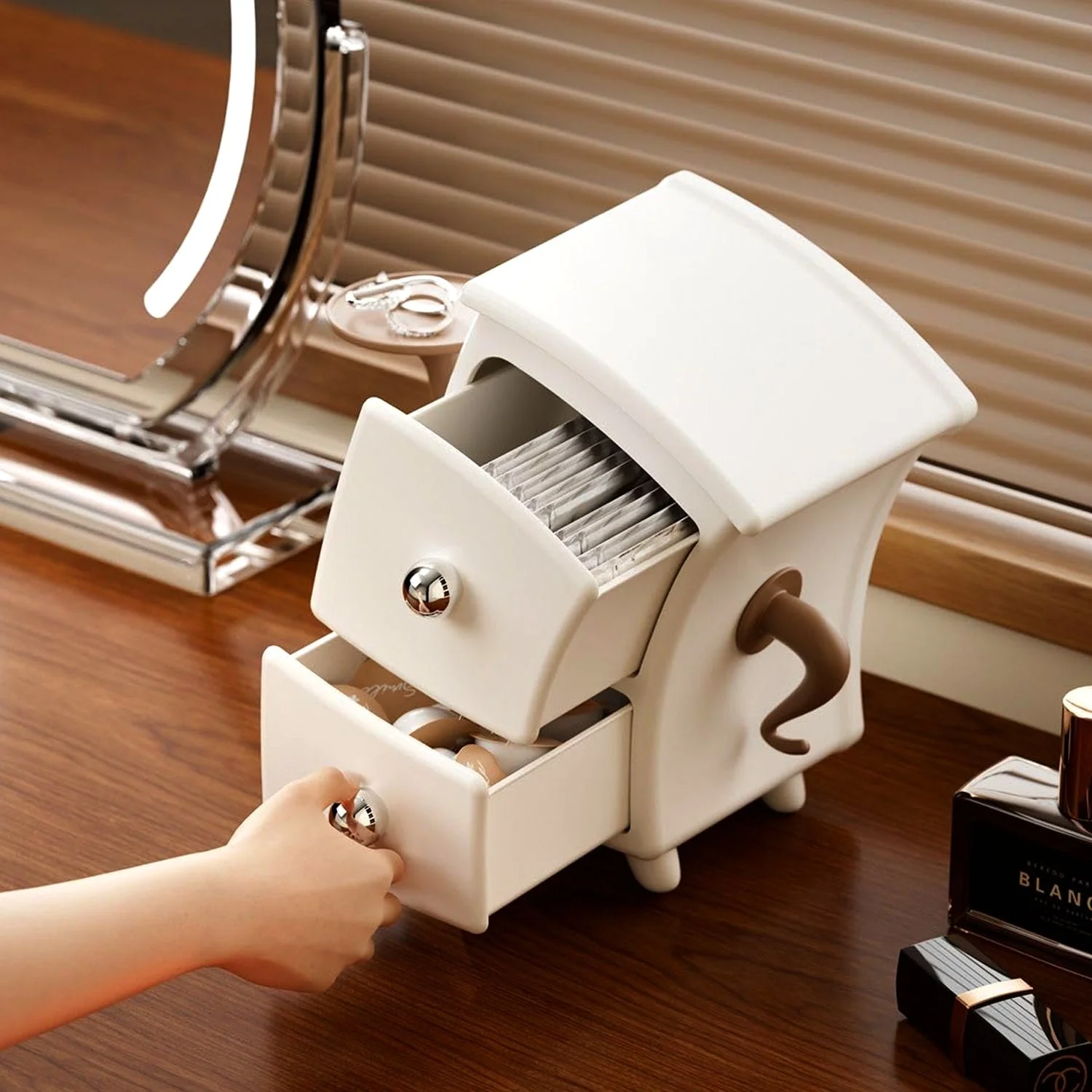 This 2-layer desktop storage drawer organizer is a compact and stylish solution for keeping daily essentials neatly arranged. Designed with two smooth-pull drawers, it allows easy access to stored items while maintaining a clutter-free workspace. The sturdy structure makes it suitable for placement on desks, countertops, or shelves, while the side hook adds extra convenience for hanging small accessories. Its modern design blends easily with home, office, or study interiors.