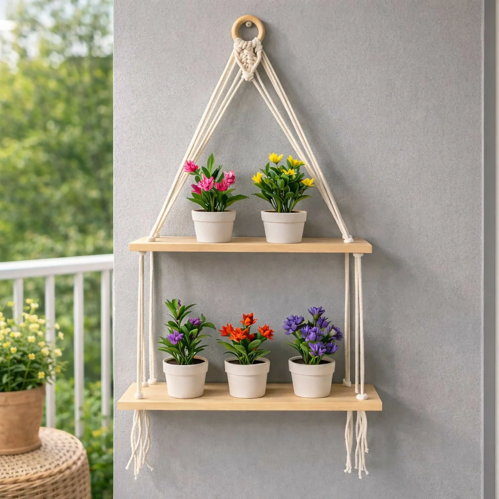 • 2 Tier Hanging Shelf Design – Dual wooden shelves provide extra display space for décor or plants.