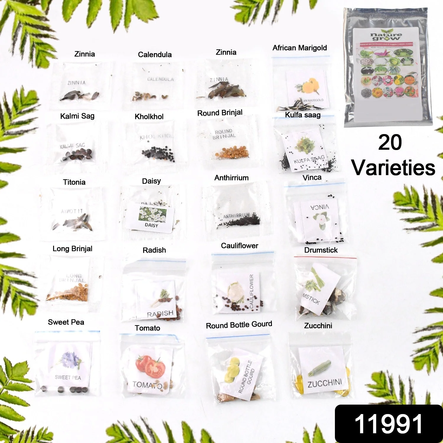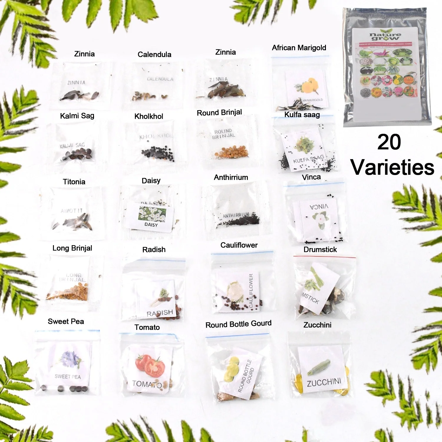20 Varieties of Vegetable & Flower Seeds Combo for Home Garden, Organic & Hybrid, Perfect for Home Gardening, Planting For Pots and Patio, Wide Variety of Vegetables (1 Pkt. / 20 Varieties)