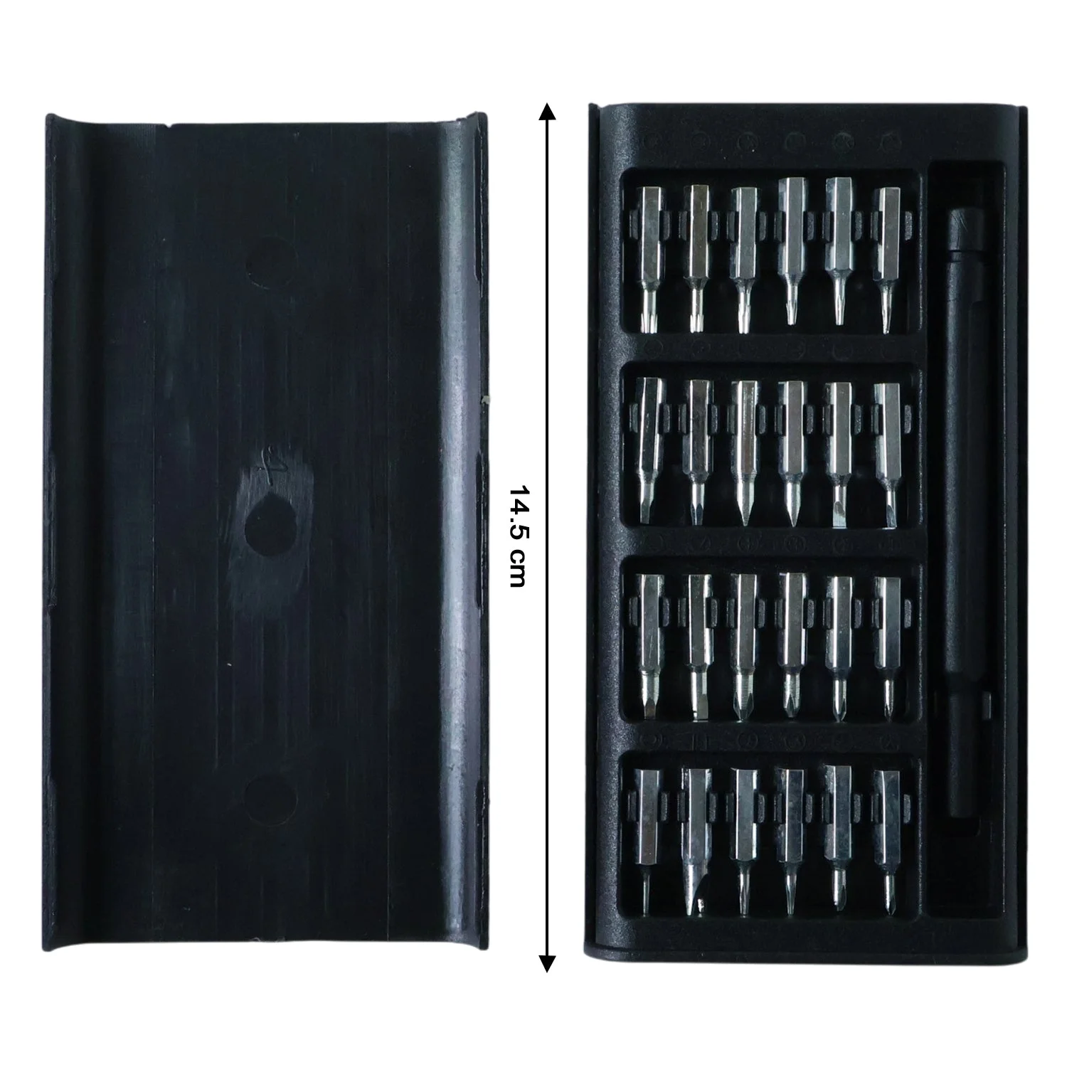 This 24 in 1 precision screwdriver tool kit is a compact and versatile solution designed for delicate repair and maintenance tasks. The set includes multiple interchangeable screwdriver bits neatly stored in a durable, pocket-sized case, making it easy to carry and organize. Ideal for working on small screws, this toolkit is perfect for handling eyeglasses, watches, mobile devices, small electronics, and other fine mechanical items. Its practical design ensures convenience for both home use and professional repair work, offering reliability whenever precision is required.