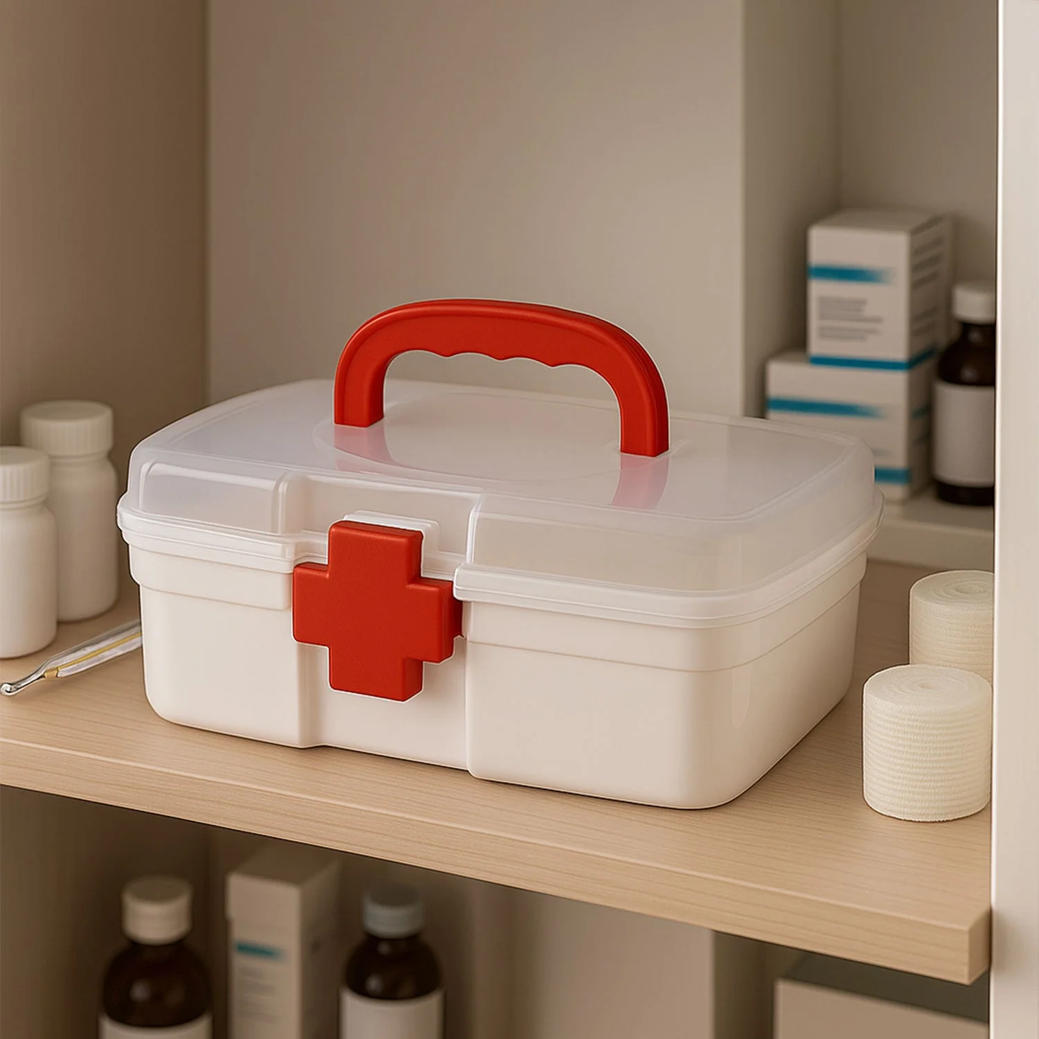 Be the first to review 3-Compartment First Aid Box – Portable Medicine Storage with Tray & Clear Lid!
