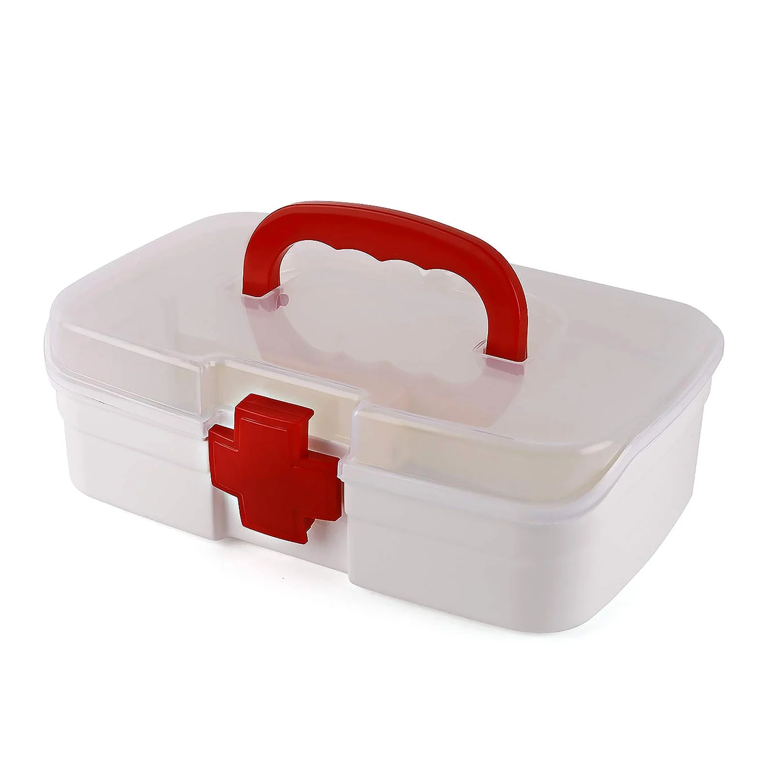 12980 3 Compartment Medical Box, 1 Piece, Indoor Outdoor Medical Utility, Medicine Storage Box, Detachable Tray Medical Box Multi Purpose Regular Medicine, First Aid Box with Handle, Transparent Lid & Color Box