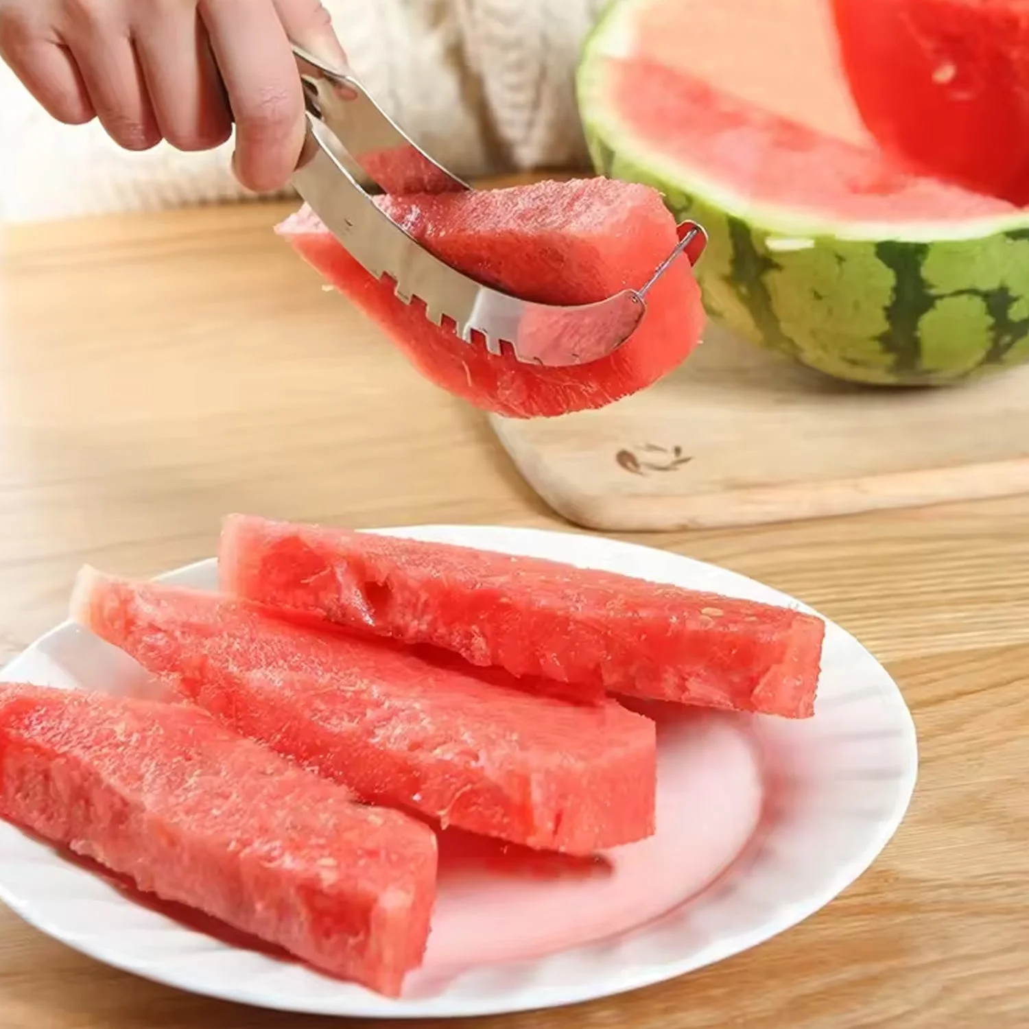 - Easy to Use: With simply slicer & server, you'll cut up a watermelon for smoothies or fruit salad in half the time. You can slice the melon straight out of the rind, which captures all the juice like a bowl.