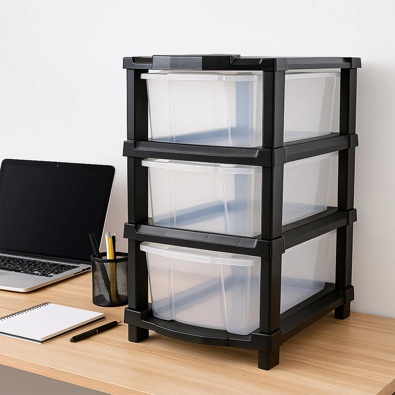 3-layer drawer organizer , transparent storage chest , stackable storage organizer , free-standing storage bins , pull-out drawer organizer , home storage solution , classic storage chest , multi-layer organizer , plastic storage drawers , smooth sliding bins , durable storage organizer