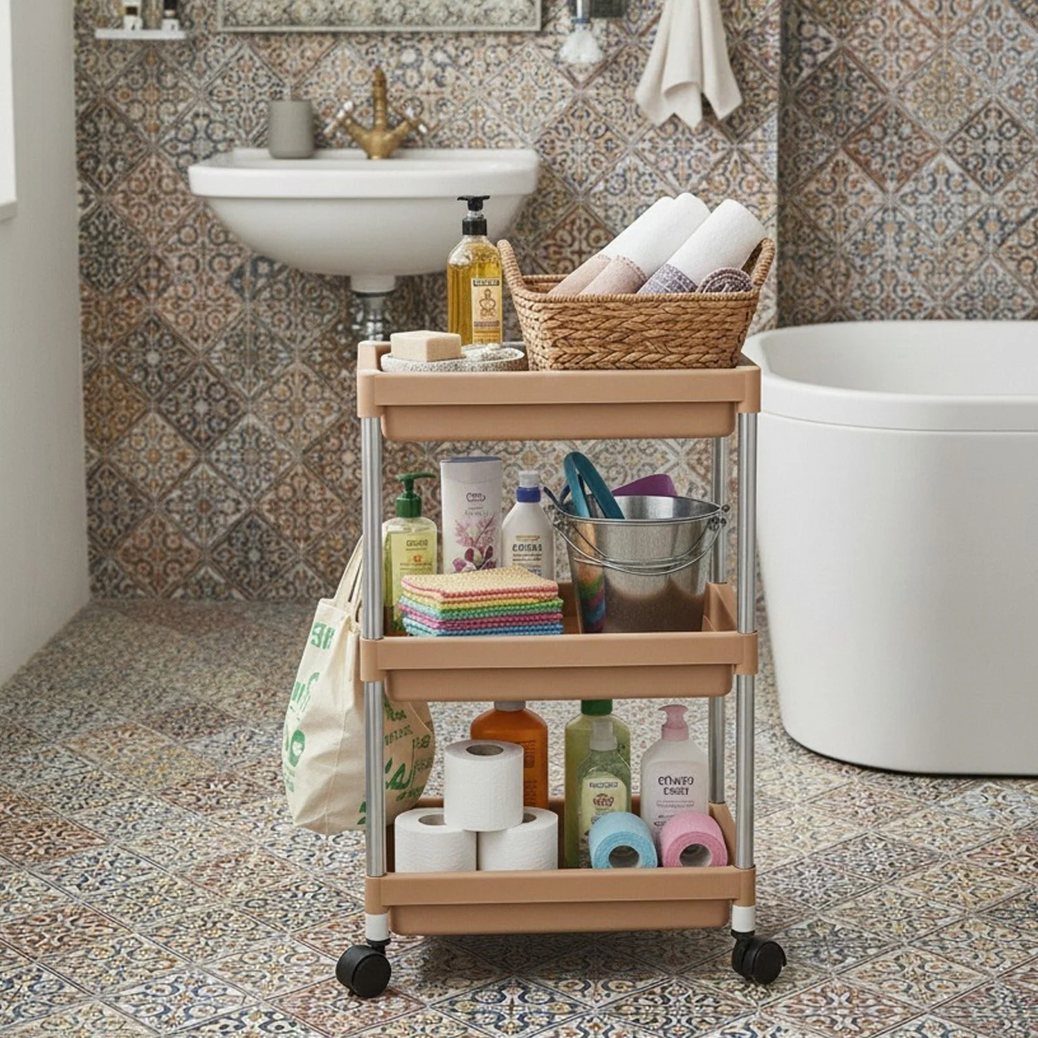 3-layer storage trolley, multipurpose storage trolley, rolling storage cart, portable storage cart, storage cart with wheels, kitchen storage trolley, office storage cart, bathroom organizer trolley, multi-tier storage cart, mobile storage cart, versatile storage trolley, home organization cart, utility storage trolley, cart for kitchen supplies