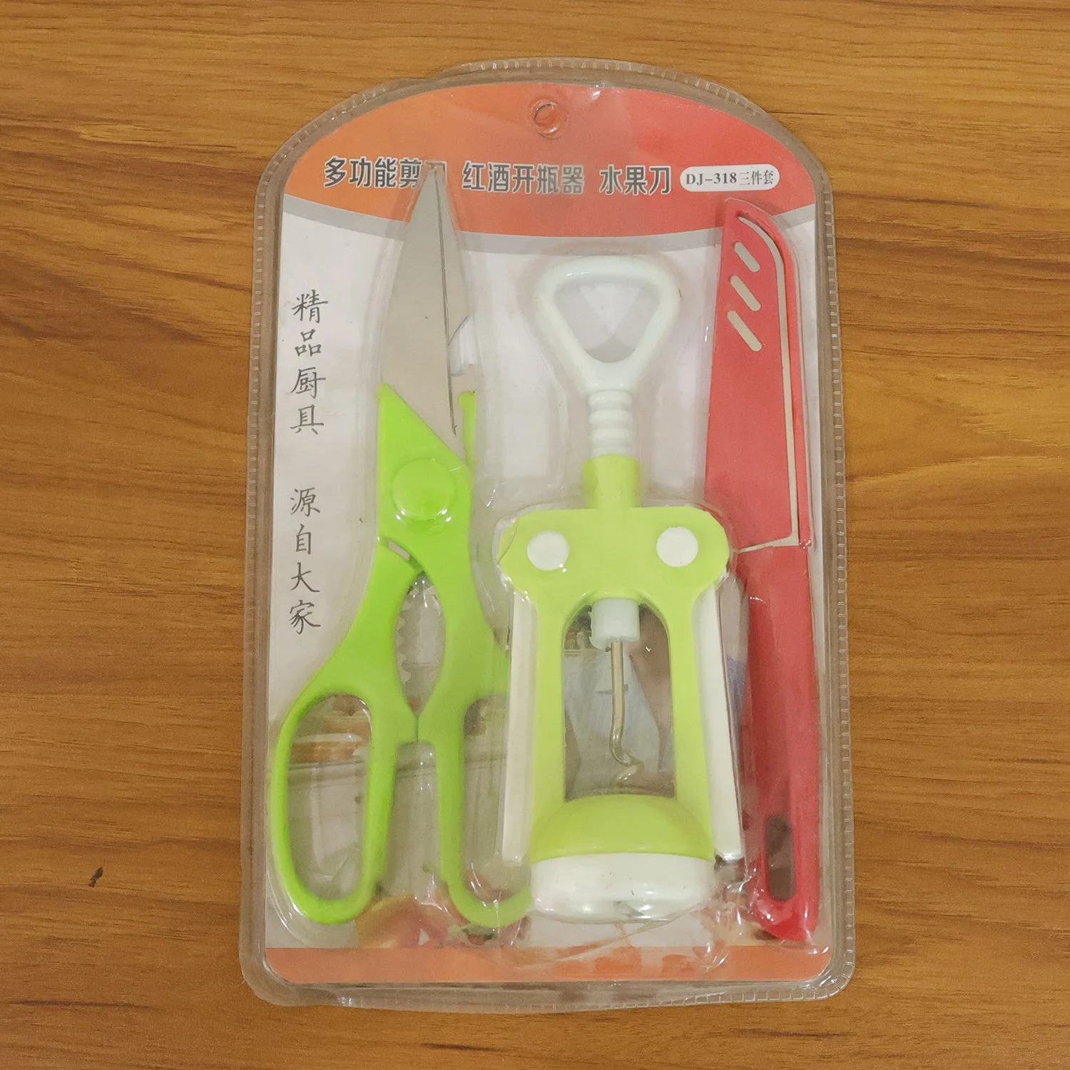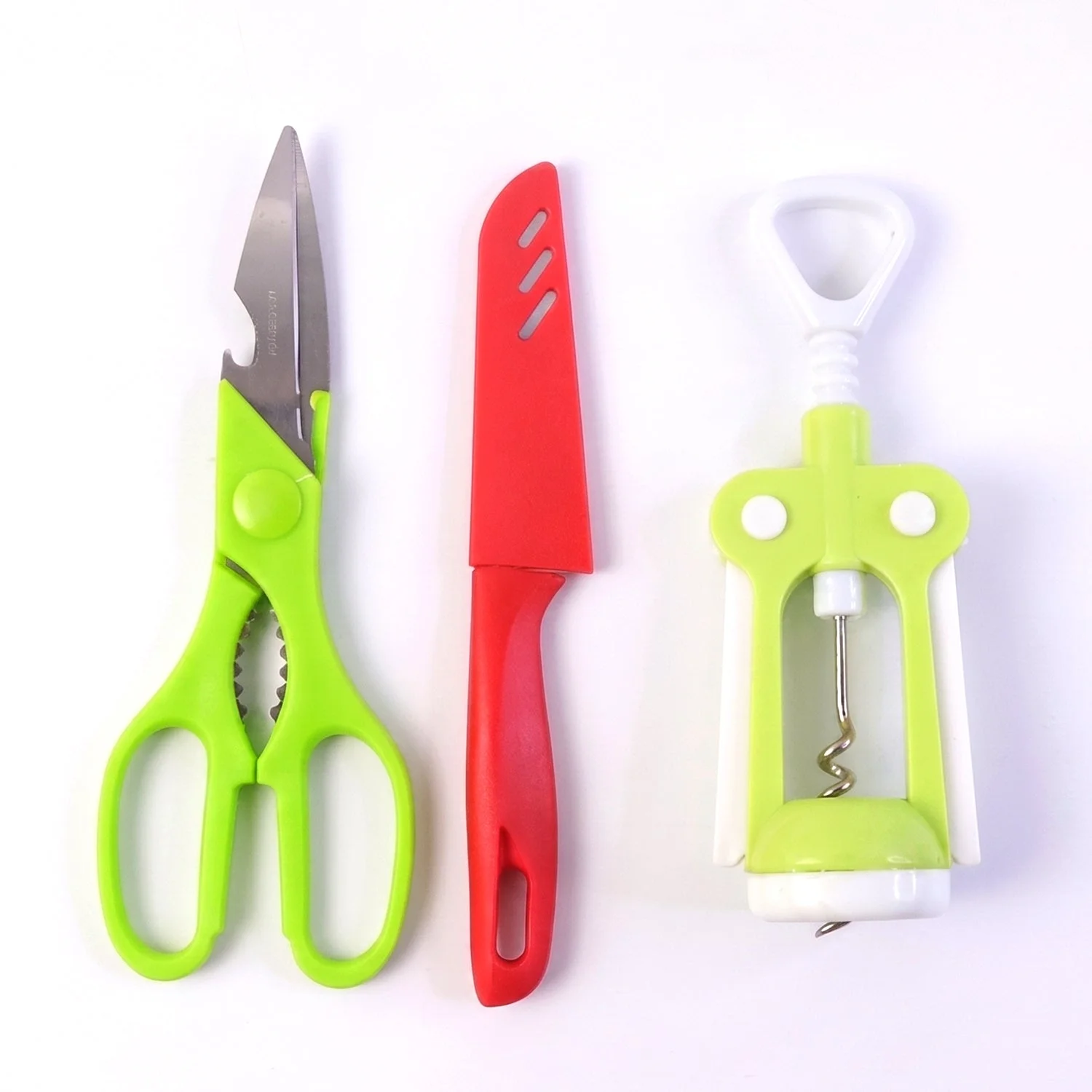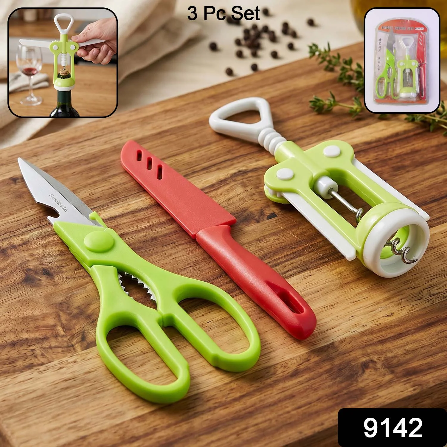 3 Pc Set Kitchen Tool Kit – Wine Bottle Opener, Knife, and Scissors Set – Essential Tools for Home and Bar Use