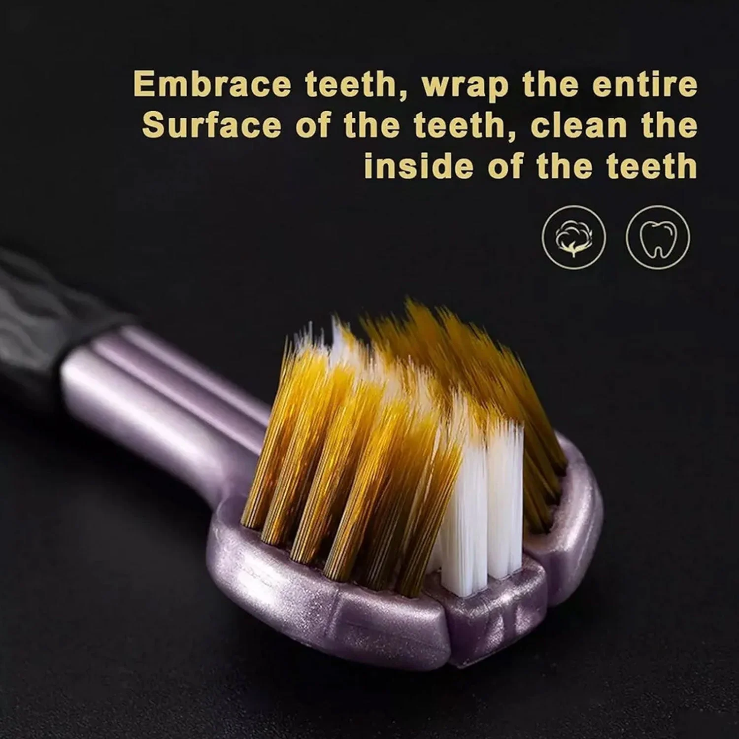- 【Comprehensive Clean】: Our 3-Sided Toothbrush unique three-head design delivers a deep and thorough clean that leaves no dead corners untouched. The 360-degree soft bristles wrap around every tooth in all directions, the entire tooth (+gums) can be cleaned without effort. It also covers hard to reach places, removes plaque and tartar.