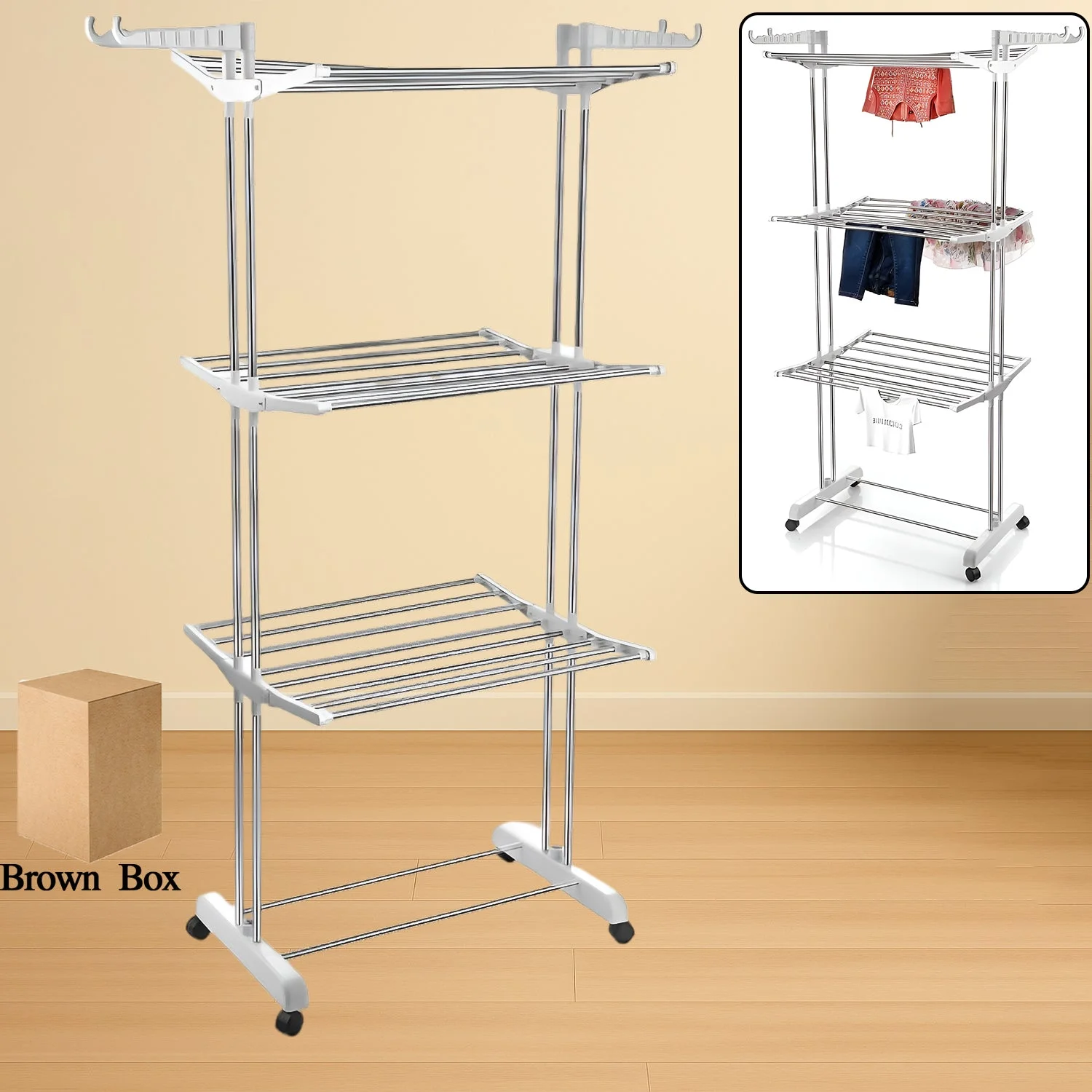 3-Tier Drying Racks: Provides a large drying area with three shelves that can accommodate multiple garments simultaneously.
