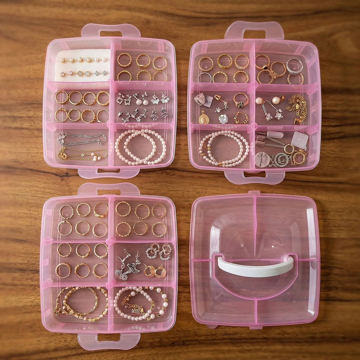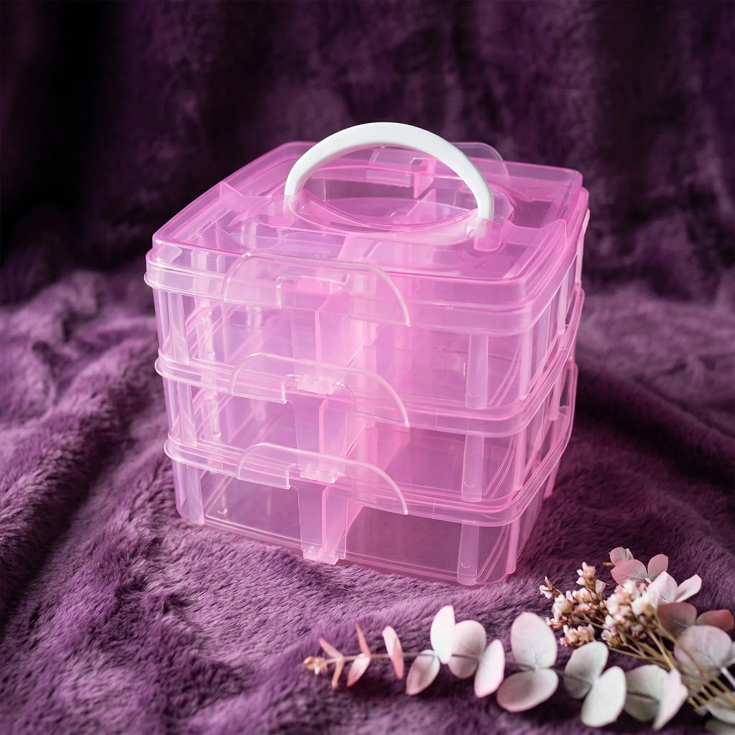 3-Tier 18 Sections Transparent Stackable Adjustable Compartment Slot Plastic Craft Storage Box