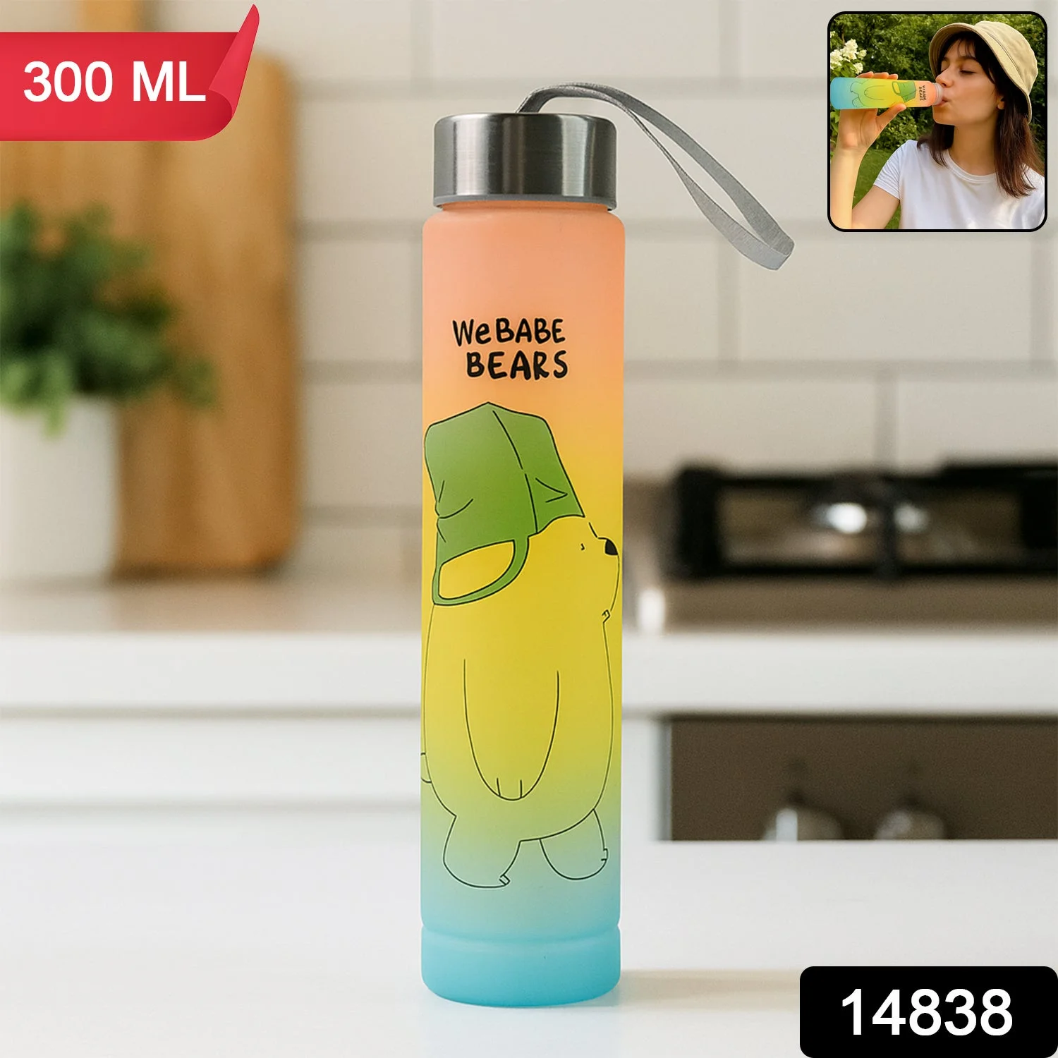 cartoon water bottle, printed water bottle, gradient water bottle, bear design bottle, cute water bottle, stylish drinking bottle, slim water bottle, portable bottle with strap, kids cartoon bottle, decorative water bottle,gift water bottle,hydration bottle,leak-proof drinking bottle, portable water container