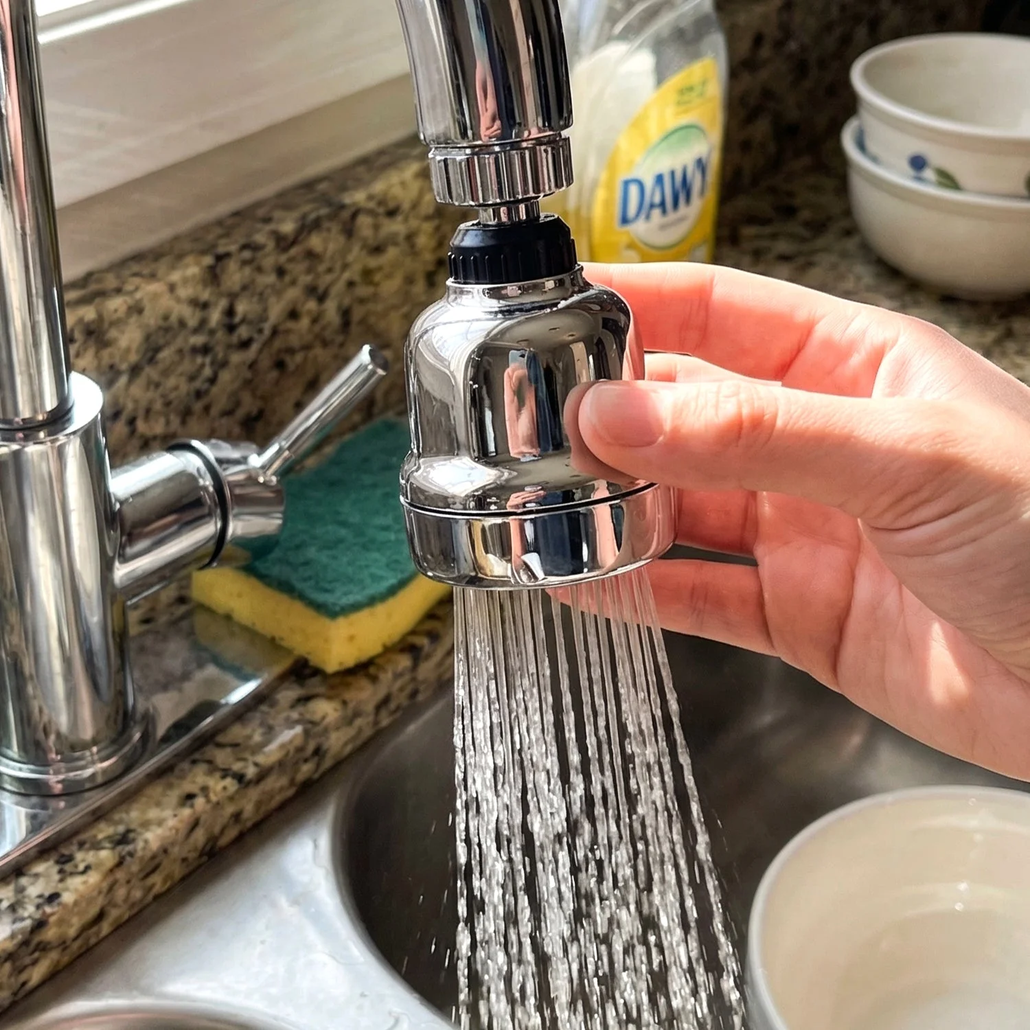 This 360-degree rotating kitchen faucet sprayer head is designed to improve water flow efficiency while reducing splashing during daily kitchen tasks. The adjustable sprayer head features three different water output modes that allow users to switch between various water streams for washing dishes, cleaning vegetables, or rinsing the sink. Its rotating design provides flexible water direction, making it easier to reach different areas of the sink. The faucet attachment also helps increase water pressure while maintaining smooth and controlled water flow. Easy to install and compatible with most standard faucets, this practical tap aerator enhances convenience and functionality in everyday kitchen use.