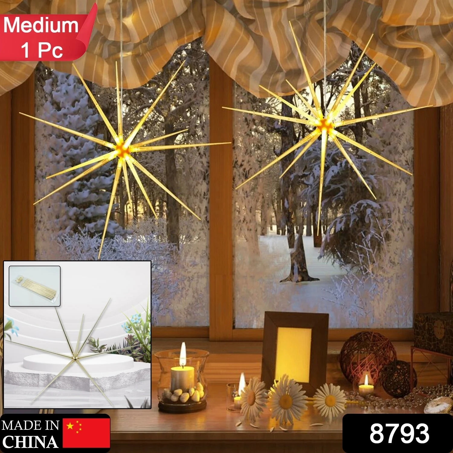 - Gold Starburst Ornaments and Holiday Decorations. Beautiful, Elegant, and Versatile; Hang them as Home Decoration Star Ornaments, New Year's Eve Party Celebrations, Wedding Centerpieces, Holiday Tabletop Displays, Graduation Parties, Home Decor Elements and Accents, and more!