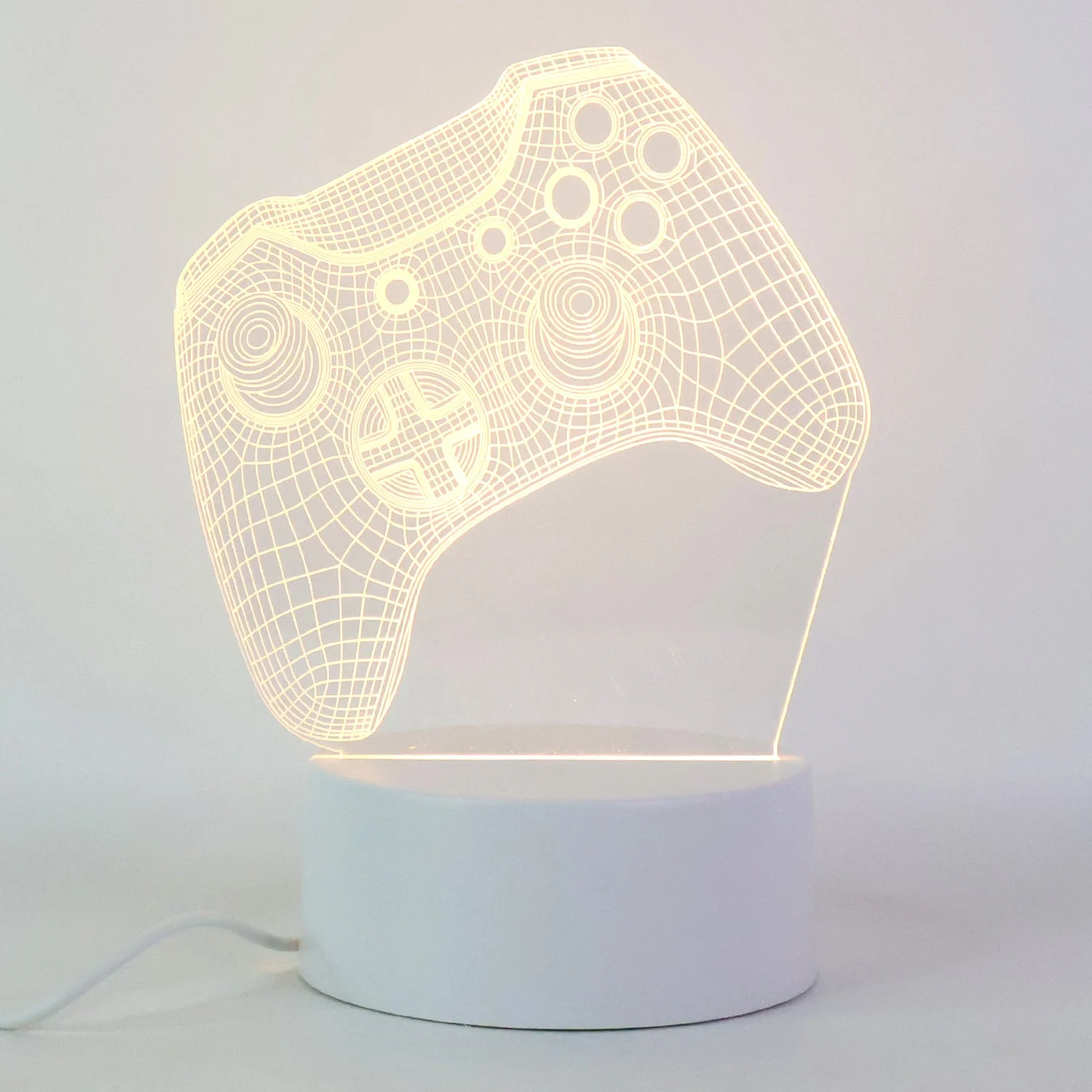 Level up your space with this 3D Illusion LED Night Lamp, creatively designed in the shape of a gaming controller. Perfect for gamers and décor enthusiasts, this lamp uses precision-engraved acrylic paired with energy-efficient LED lighting to create a glowing 3D wireframe effect that looks futuristic and stylish.