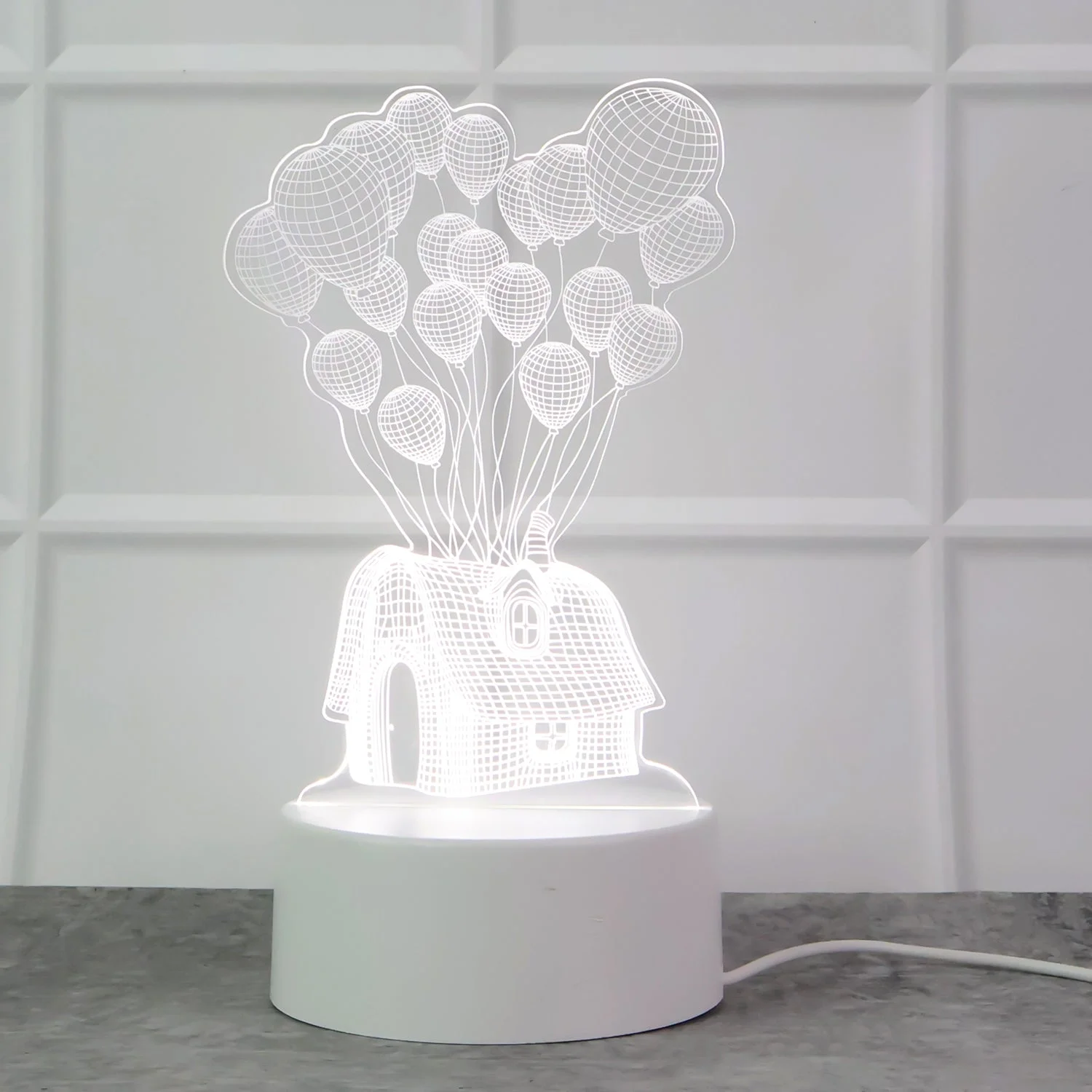3D Illusion LED Night Lamp with House and Balloons Design – USB Powered Decorative Acrylic Table Light for Bedroom, Living Room, Kids Room, Home Décor, and Gift Item