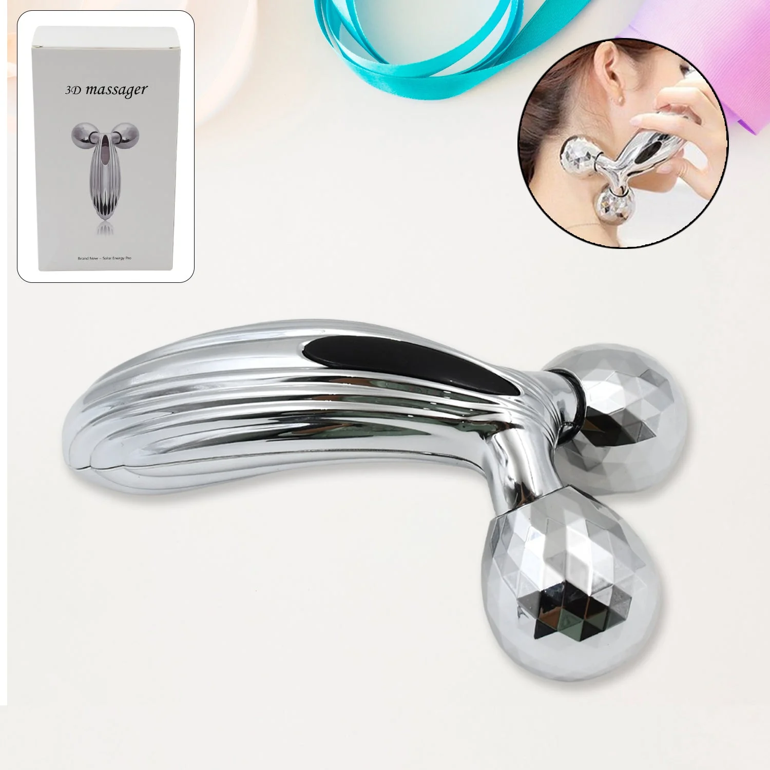 3D Manual Face Roller Massager For Women Solar Powered Body Roller Massager Y-Shape Face Lift Tool Firming Beauty Massage Body Face Massager Glowing Skin (1 Pc)