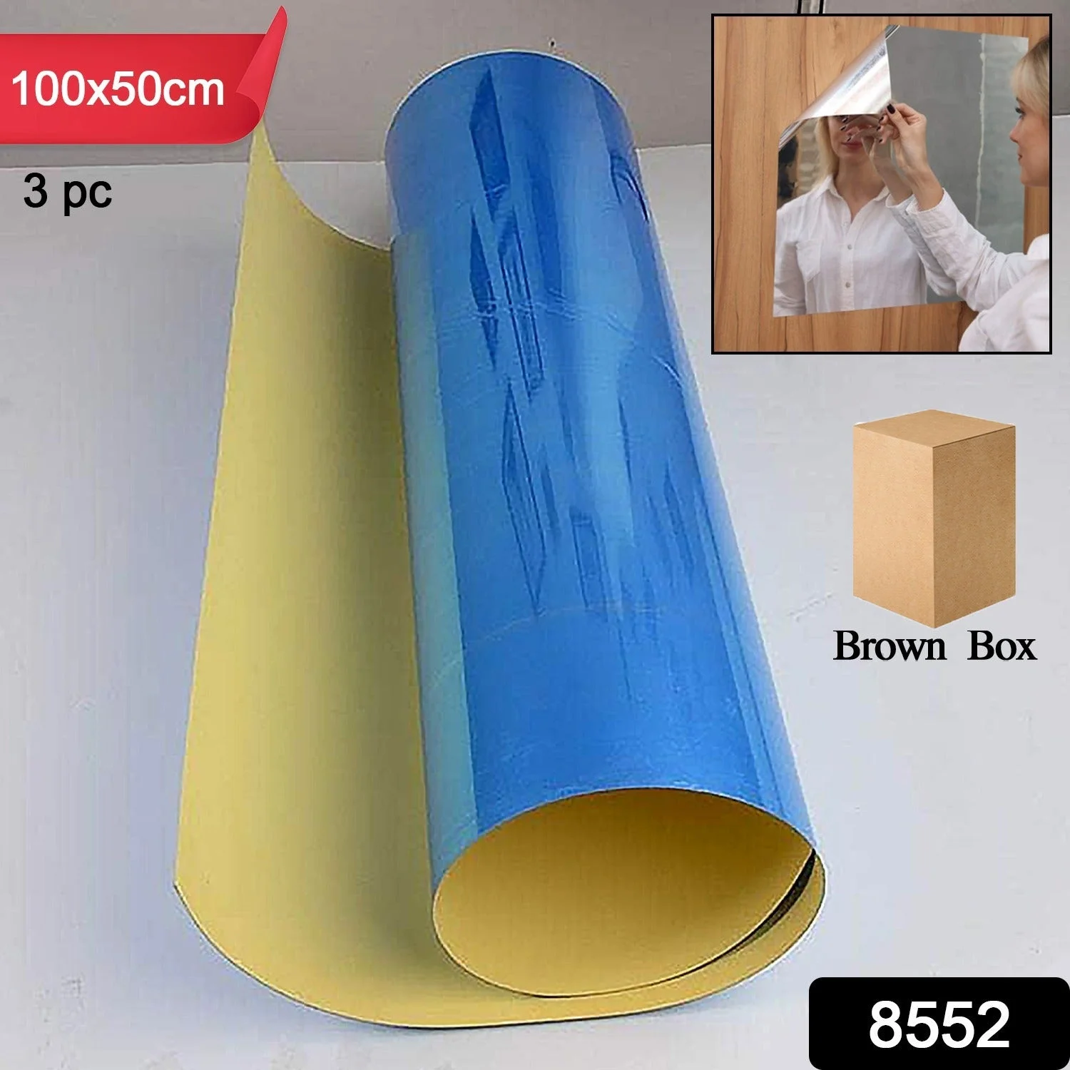 8552 3D Mirror Wall Stickers Wall Mirror Decorative Mirror Paper for Home, Living Room Wall, Bedroom Wall, TV Backdrop Use Paper (100×50 Cm / 3 Pc )