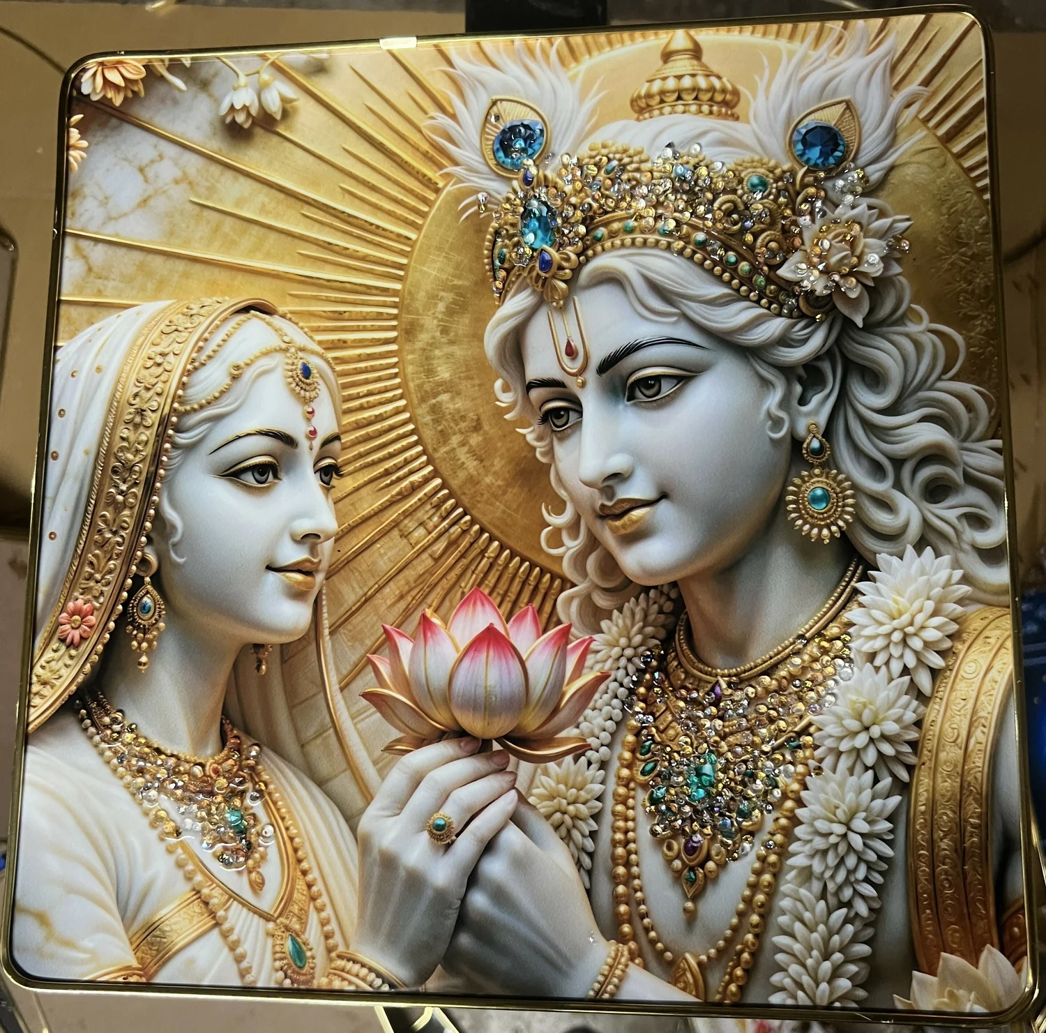 Be the first to review 3D Radha Krishna Lotus Theme Crystal Wall Art Decorative Frame (12x12 Inch)!