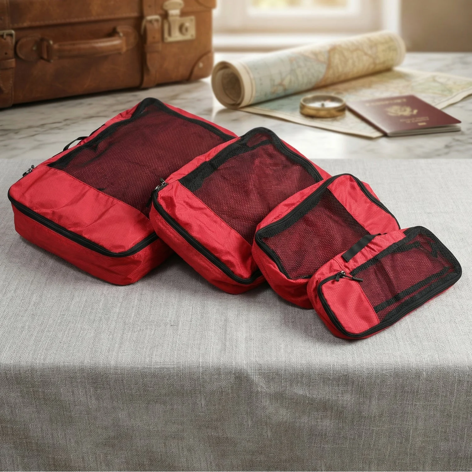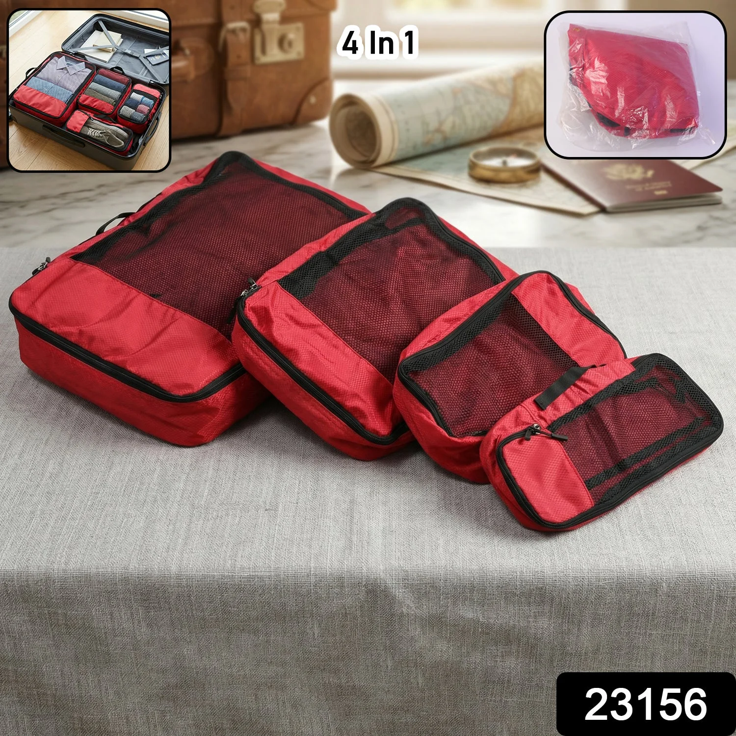 Packing efficiently helps travelers keep luggage organized and easy to access. The 4 in 1 Travel Organizer Packing Cubes Bag Set helps separate clothes and essentials neatly inside suitcases. This travel organizer packing cubes set simplifies packing and unpacking during trips.