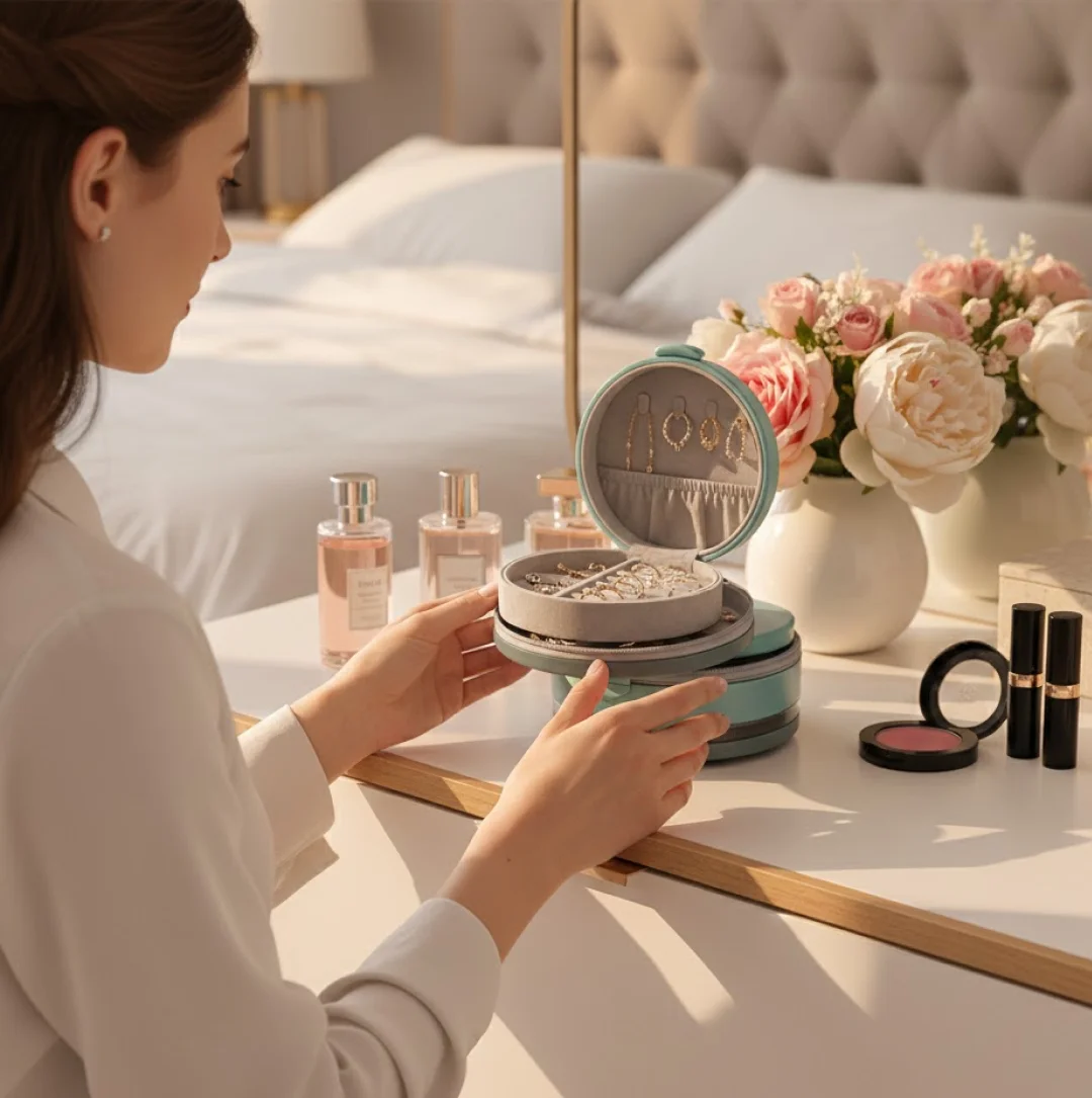 Be the first to review 4 Layers Jewellery Box, 360 Degree Rotating Jewelry Box, Jewelry and Earring Organizer Box with Mirror, Accessory Storage Box, Travel Decor Portable Jewelry Case Ornaments Storage Box Necklace Jewelry Organizer Jewelry Organizer Box!