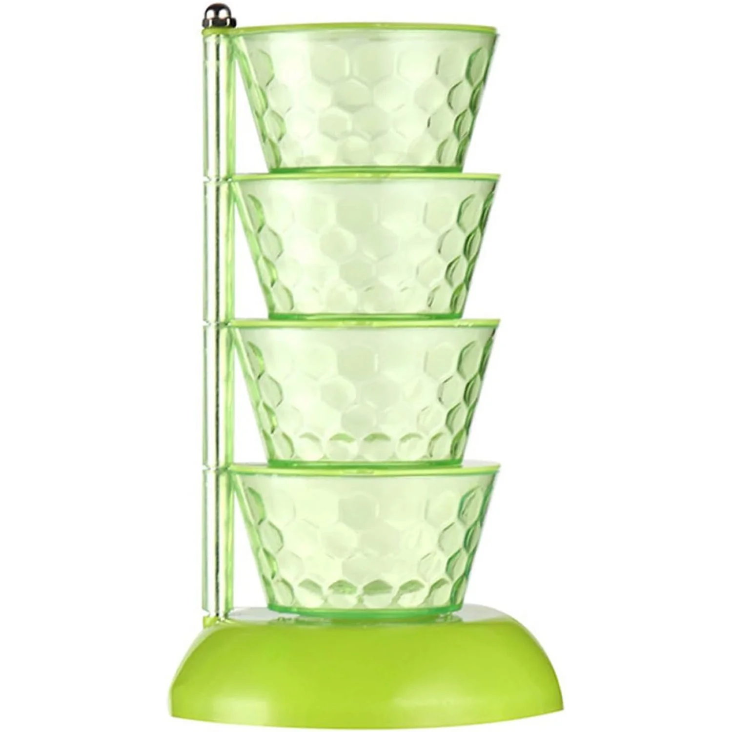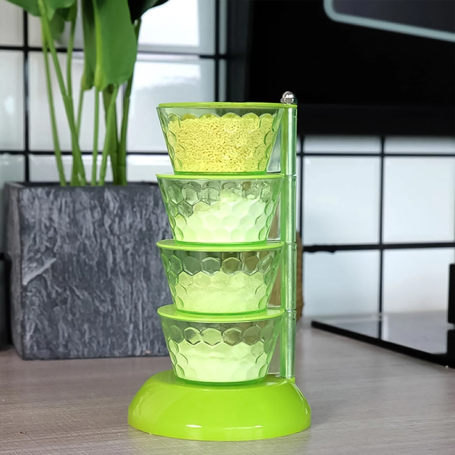 4 Section 360° Rotating Vertical Seasoning Box Plastic Pickle Tower | Spice Rack | Achar Stand for Dining Table | Condiment Set | Multipurpose Container (4 Layer with 4 Plastic Spoon / 1 Set)