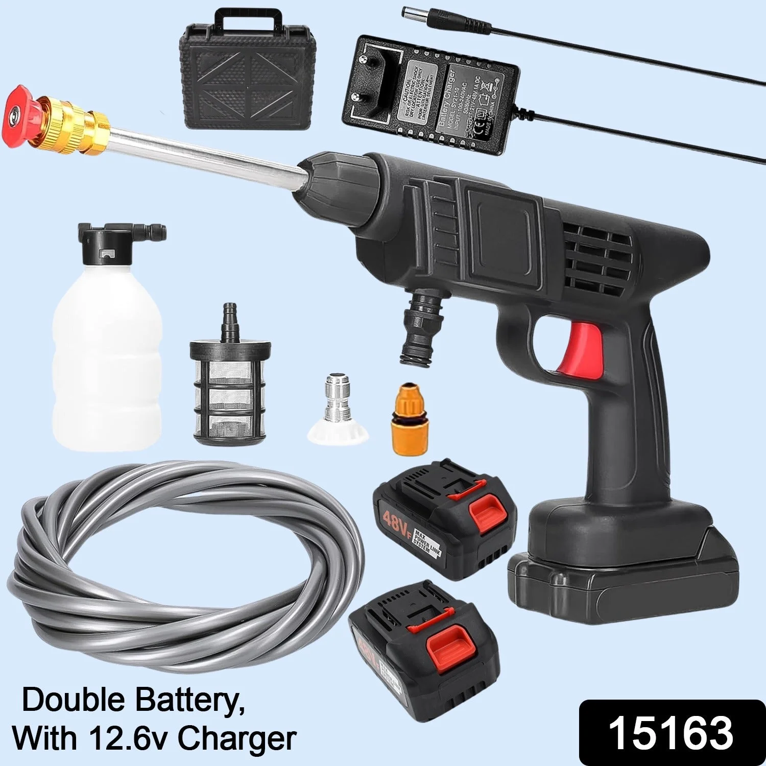 48V Double Battery Car Washer Gun With 12.6v Charger Wireless High Pressure Washer Water Spray Gun Cordless Pressure for Car Wash Bike Washing Cleaning Handheld Pressure Washer 48V Rechargeable Electric Water Gun with Adjustable Nozzle Car washing Kit