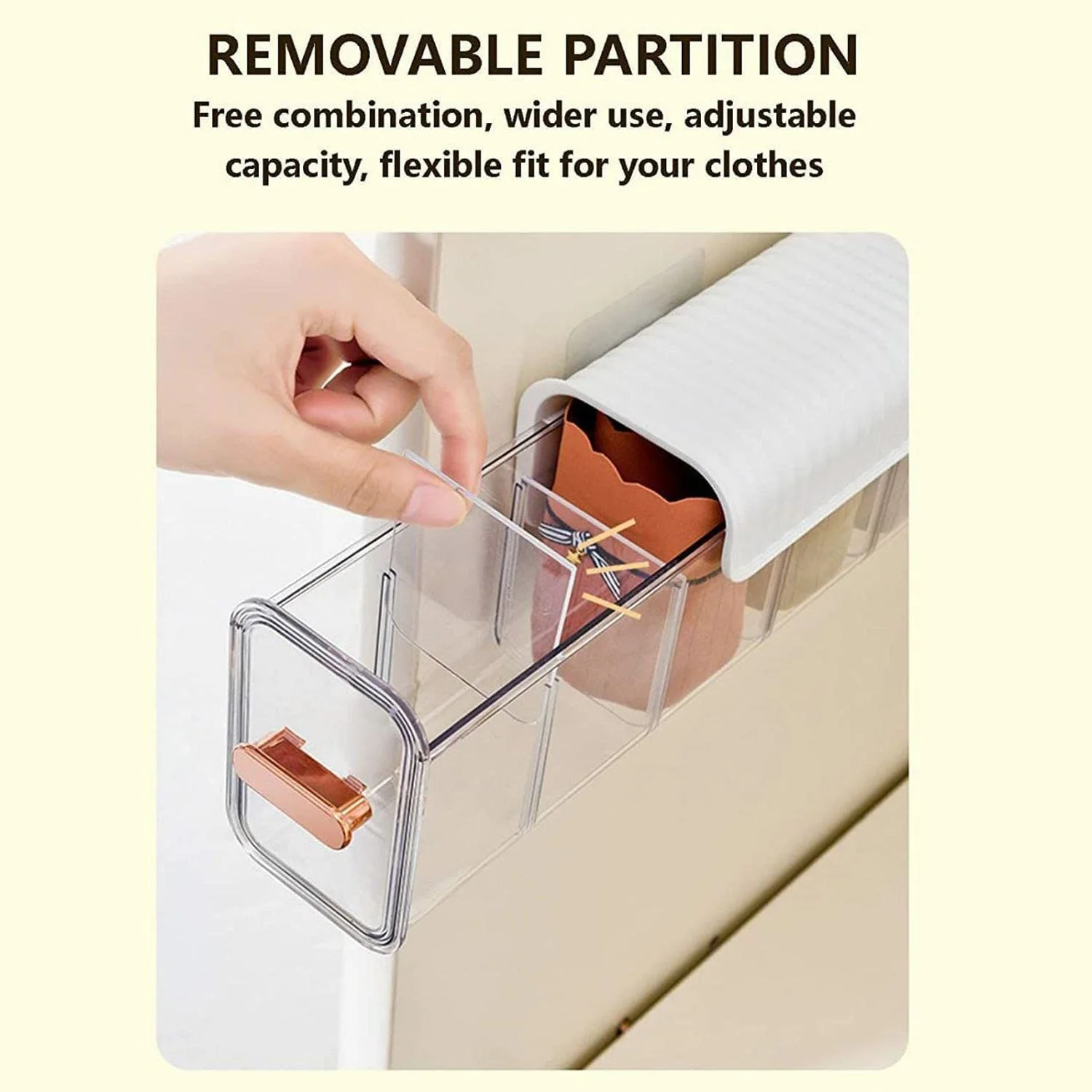 - Clear Wall Mounted Drawer Organizer: This Clear Wall Mounted Drawer Organizer will give you a new concept of organizers when used. You will achieve an organized and refined living space. You can use the space as you wish by removing the divided board.