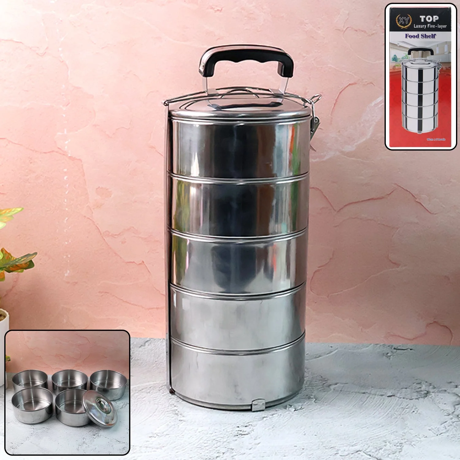 - CONVENIENT AND COMPACT: The Stainless Steel 5 Compartment tier Lunch Box offers a practical solution for carrying your meals on the go. Its round shape and compact size make it perfect for kids, college students, and office-goers.