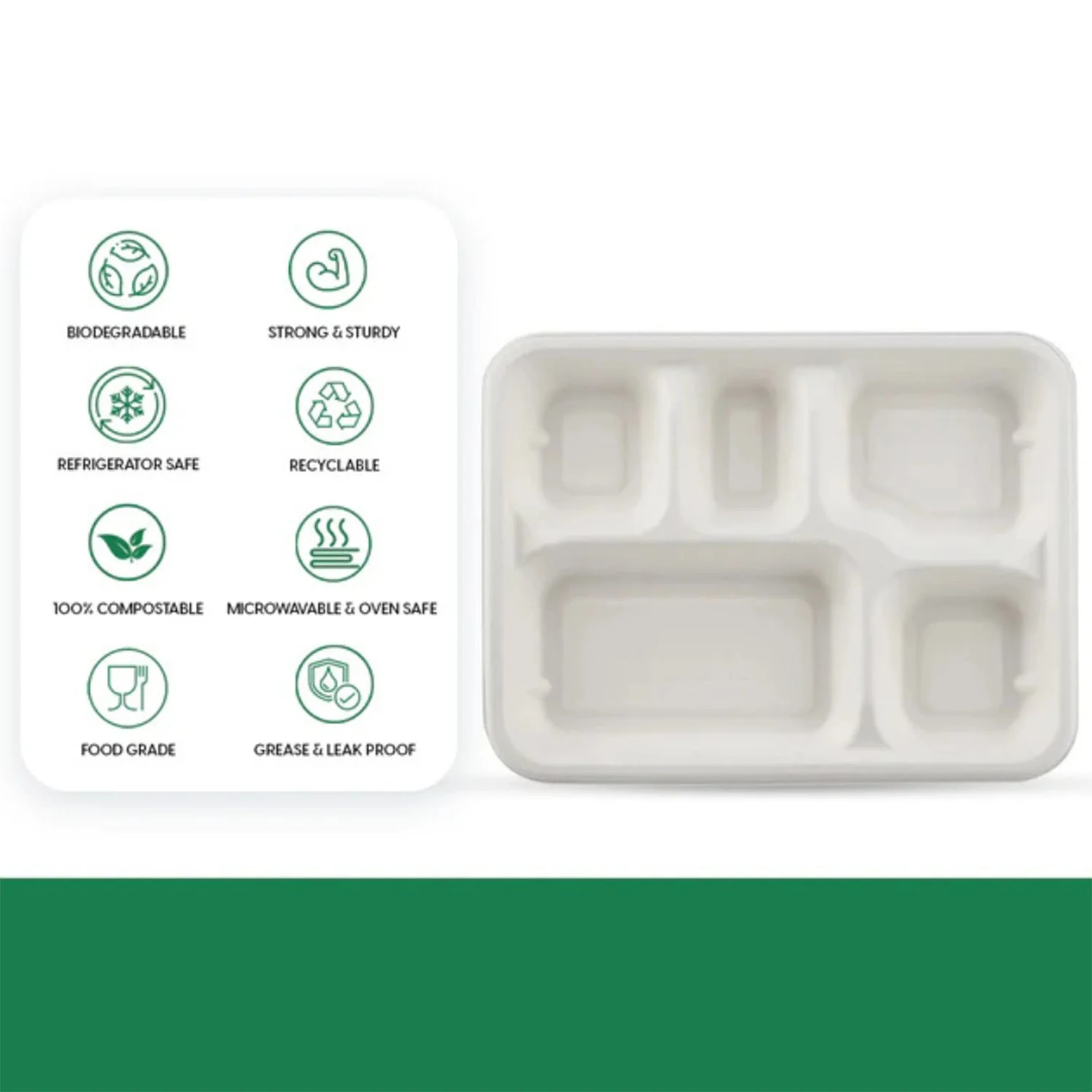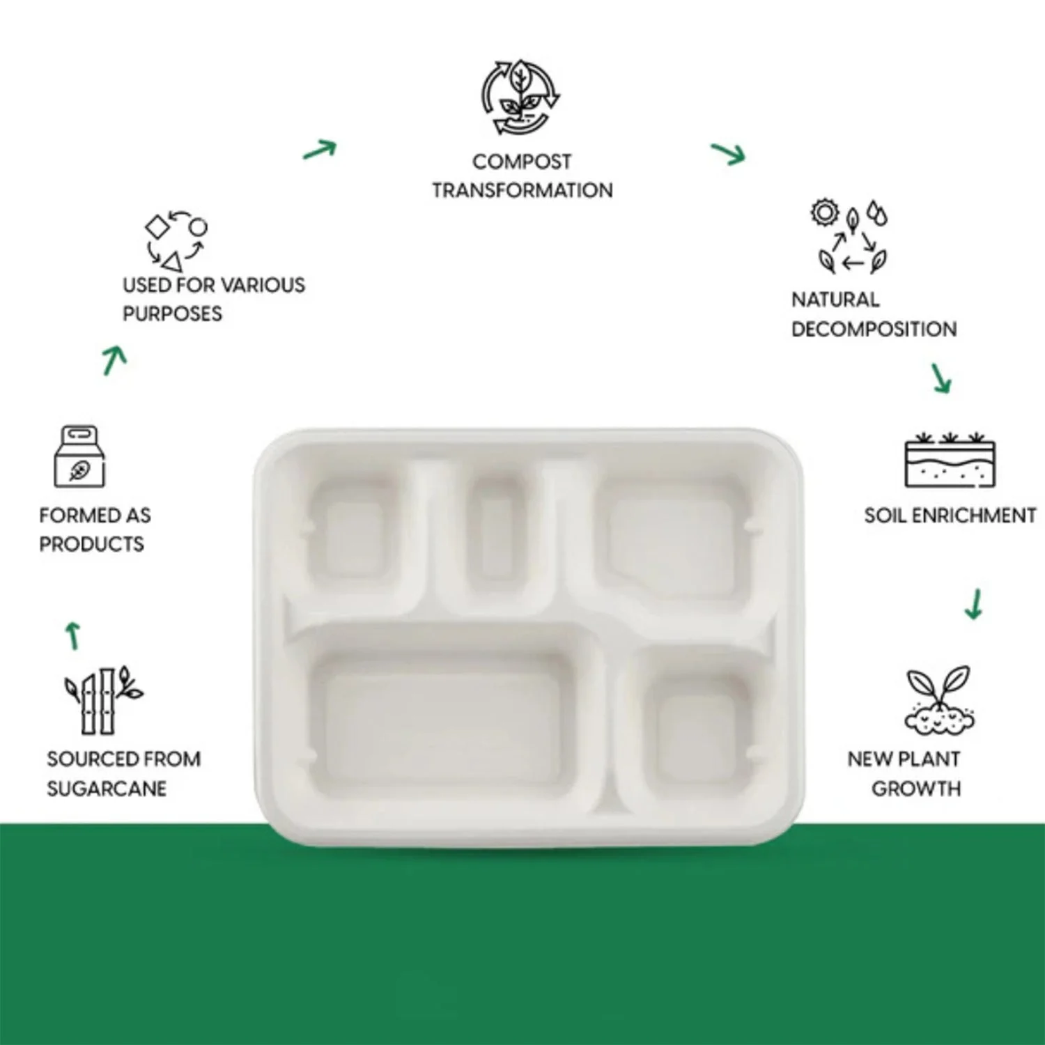 compostable lunch plate , 5-compartment plate , microwave-safe plate , freezer-safe plate, thali plate , combo meal plate , sectioned disposable plate , disposable compartment plate , leak-resistant lunch plate , meal portion plate , sectioned meal plate , compostable meal tray , lunch prep plate , disposable thali plate , sturdy compartment plate , compostable sectioned plate