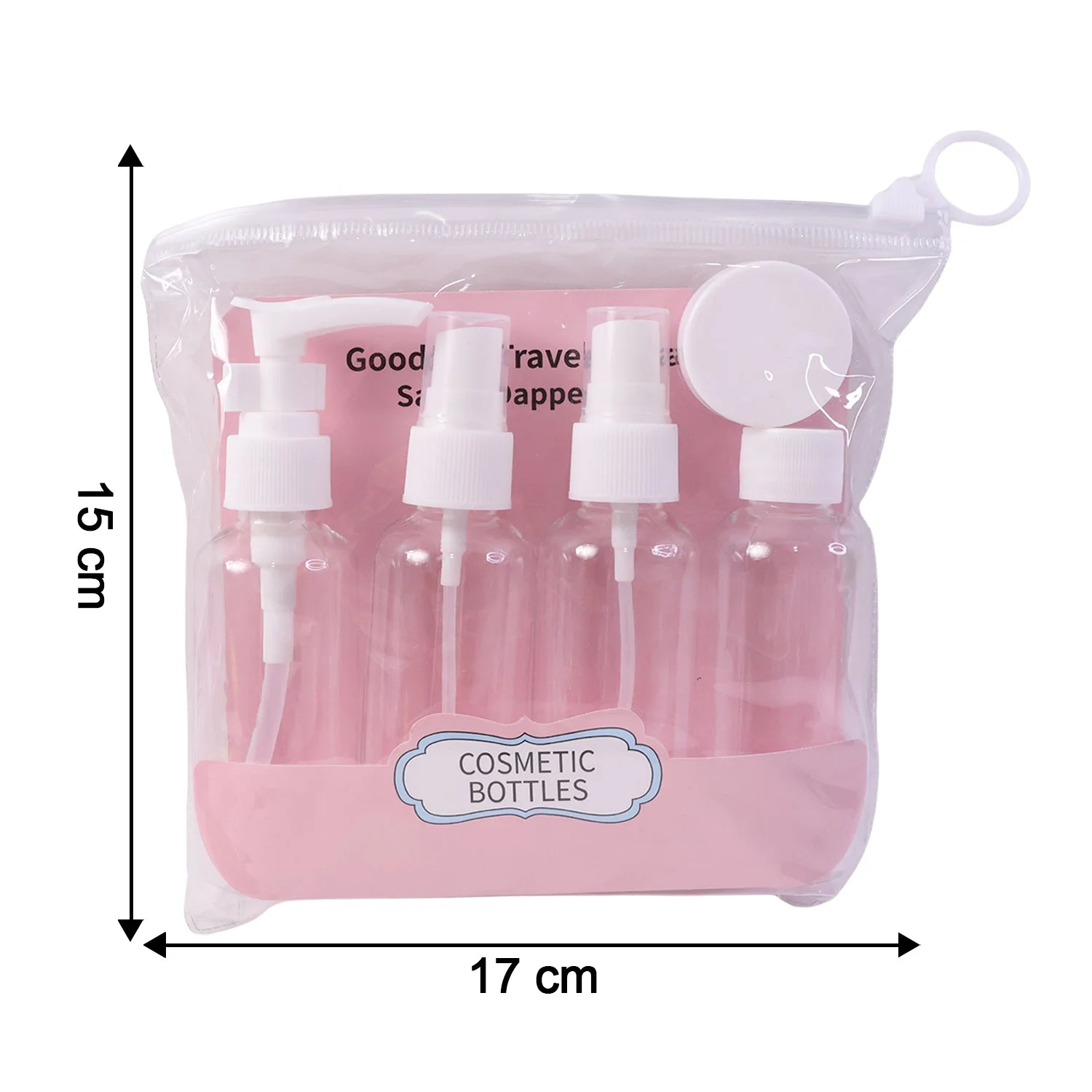 This 5-in-1 travel cosmetic bottle set is a practical and compact solution for carrying personal care and skincare essentials while travelling or organizing daily routines. The set includes multiple bottle types and a small cream jar, allowing you to store different products separately without leakage or mess. Designed for easy dispensing, each container is suitable for liquids, gels, and creams, making it ideal for toiletries, cosmetics, and grooming products. Its transparent body helps quickly identify contents, while the lightweight, reusable design makes it perfect for travel, gym, office, or home use.