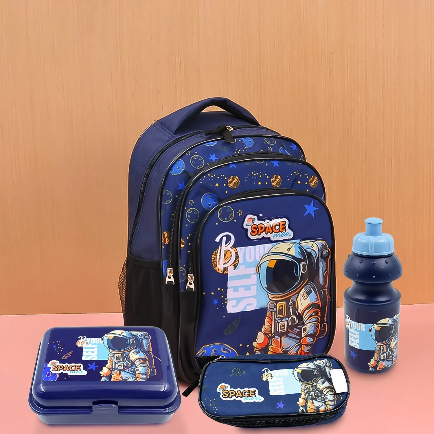 5 in 1 School Bag, School backpack comes with unique look and attractive designs Includes lunch bag, 14 inch School Bags, water bottle & pencil case in box packing (1 Set / Mix Color)